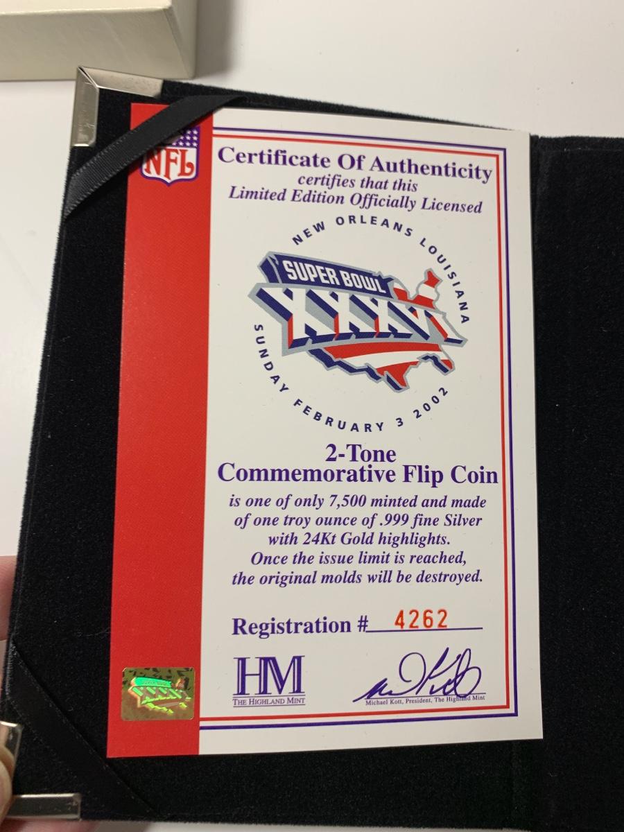 Authenticated NFL limited edition .999 silver coin highlights in gold