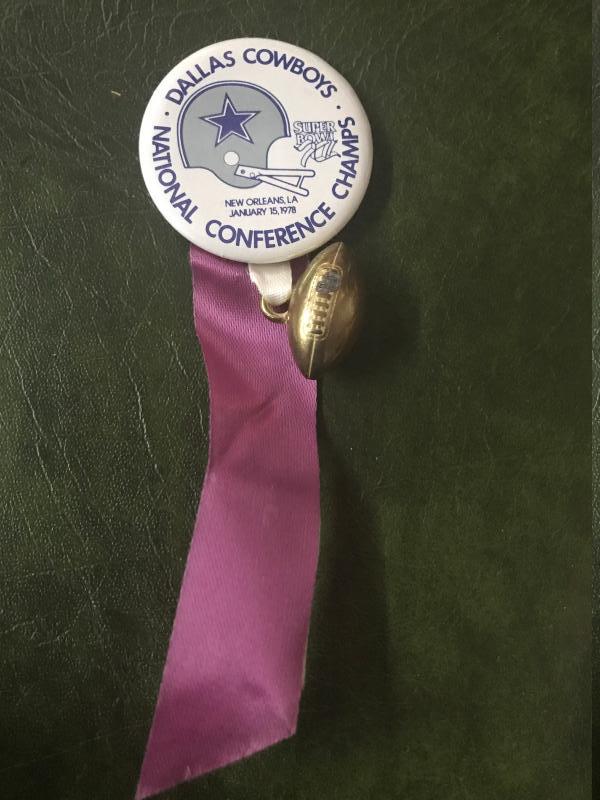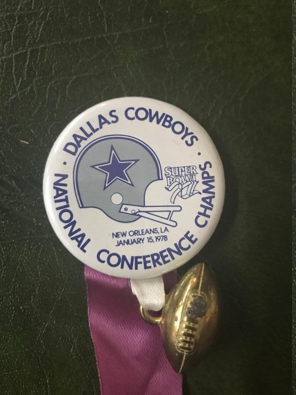 Super Bowl XII Dallas Cowboys Collectible Pin with Ribbon and Charm
