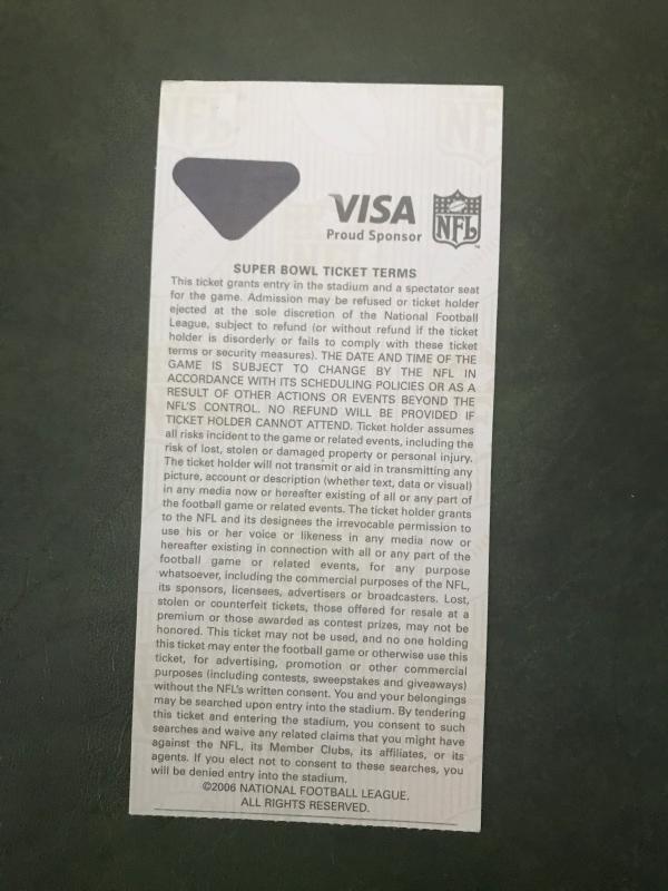 Super Bowl XL (40) Stadium Ticket (Item 185)