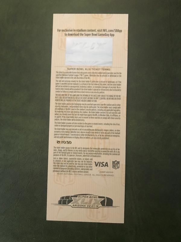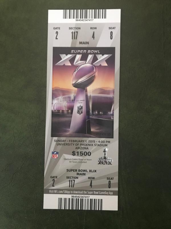 Super Bowl XLIX FULL Stadium Ticket (Item 195)