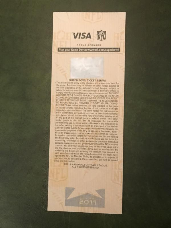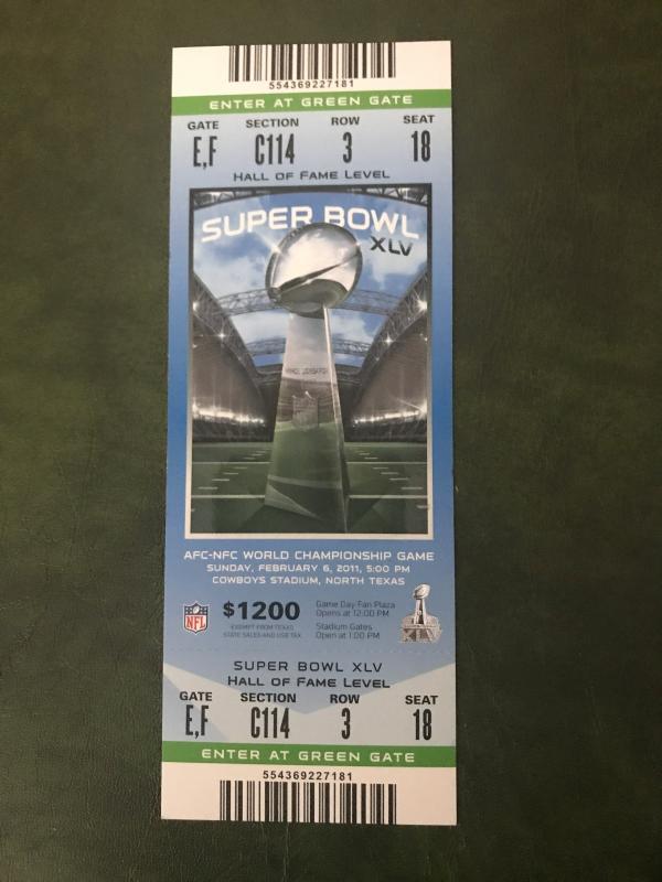 Super Bowl XLV FULL Stadium Ticket (Item 190)