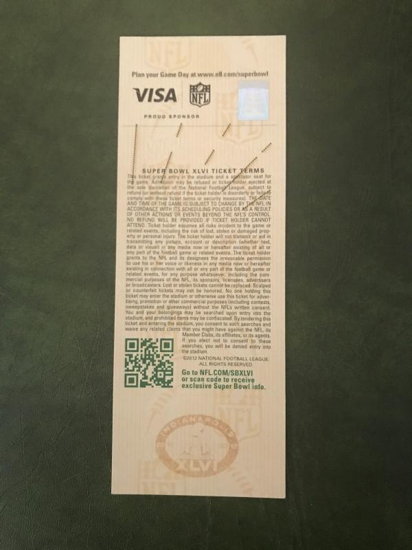 Super Bowl XLVI FULL Stadium Ticket (Item 192)