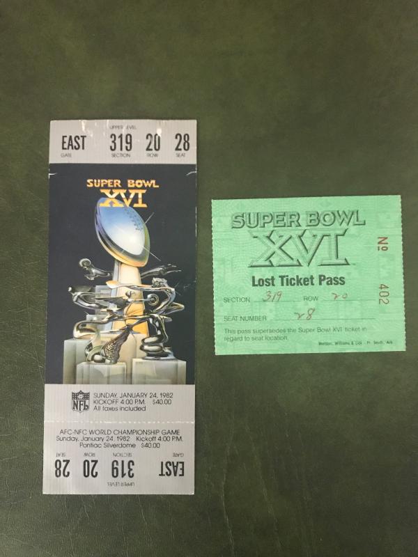 Super Bowl XVI FULL Stadium Ticket (Item 158)