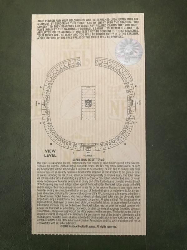 Super Bowl XXXVII Stadium Ticket (Item 182)