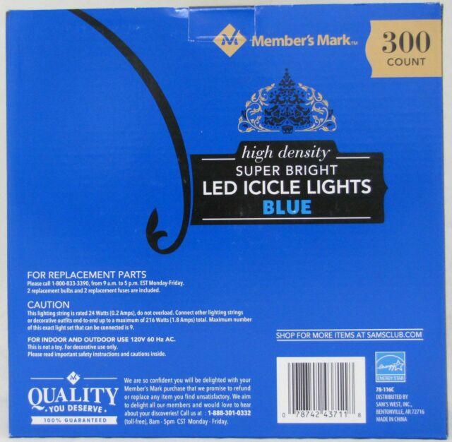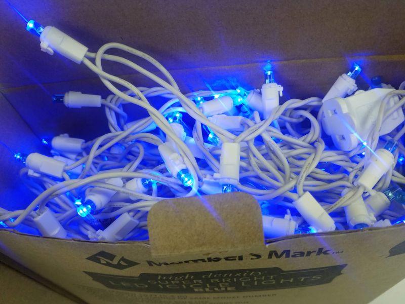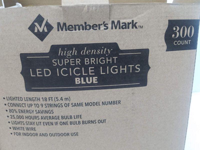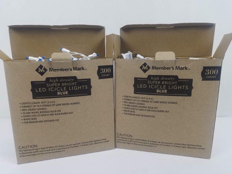 Super Bright LED Icicle Lights, Blue, 600 Count, 2 Open Boxes (300 each) - New