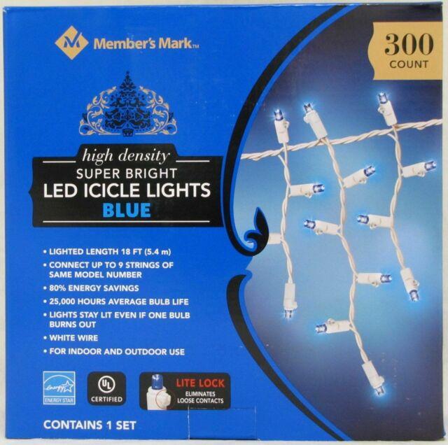 Super Bright LED Icicle Lights, Blue, 600 Count (2 strands, 300 lights each) Open Box - New