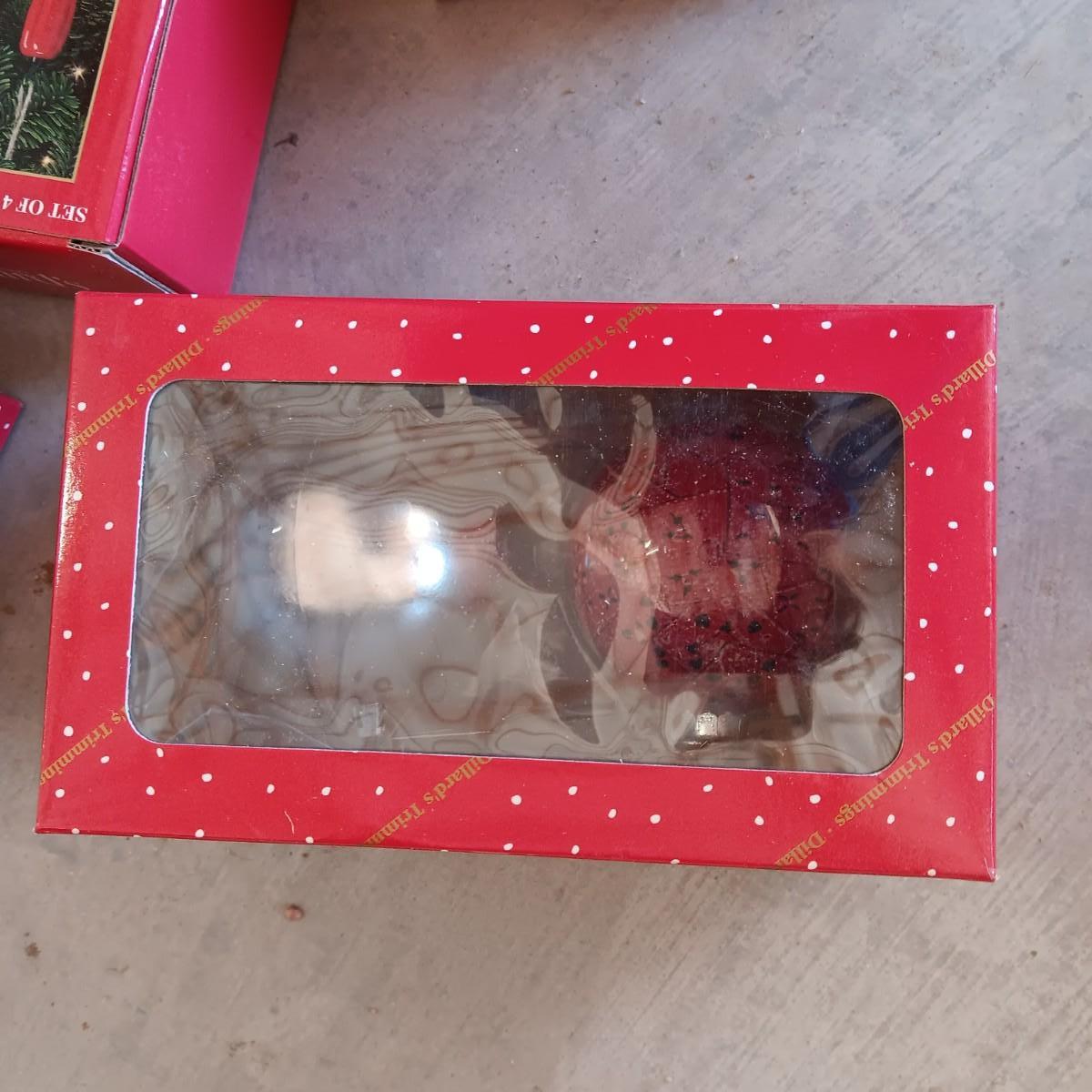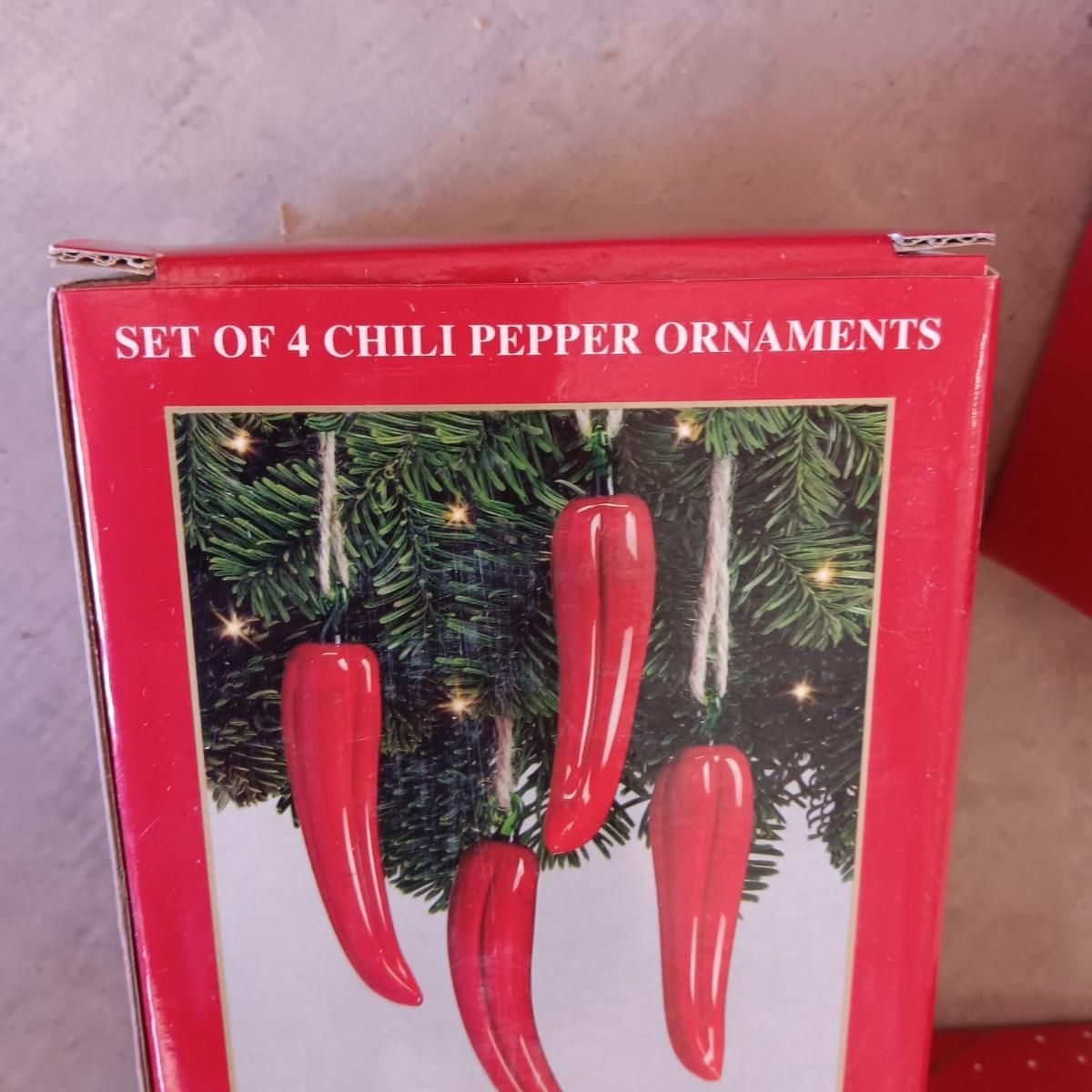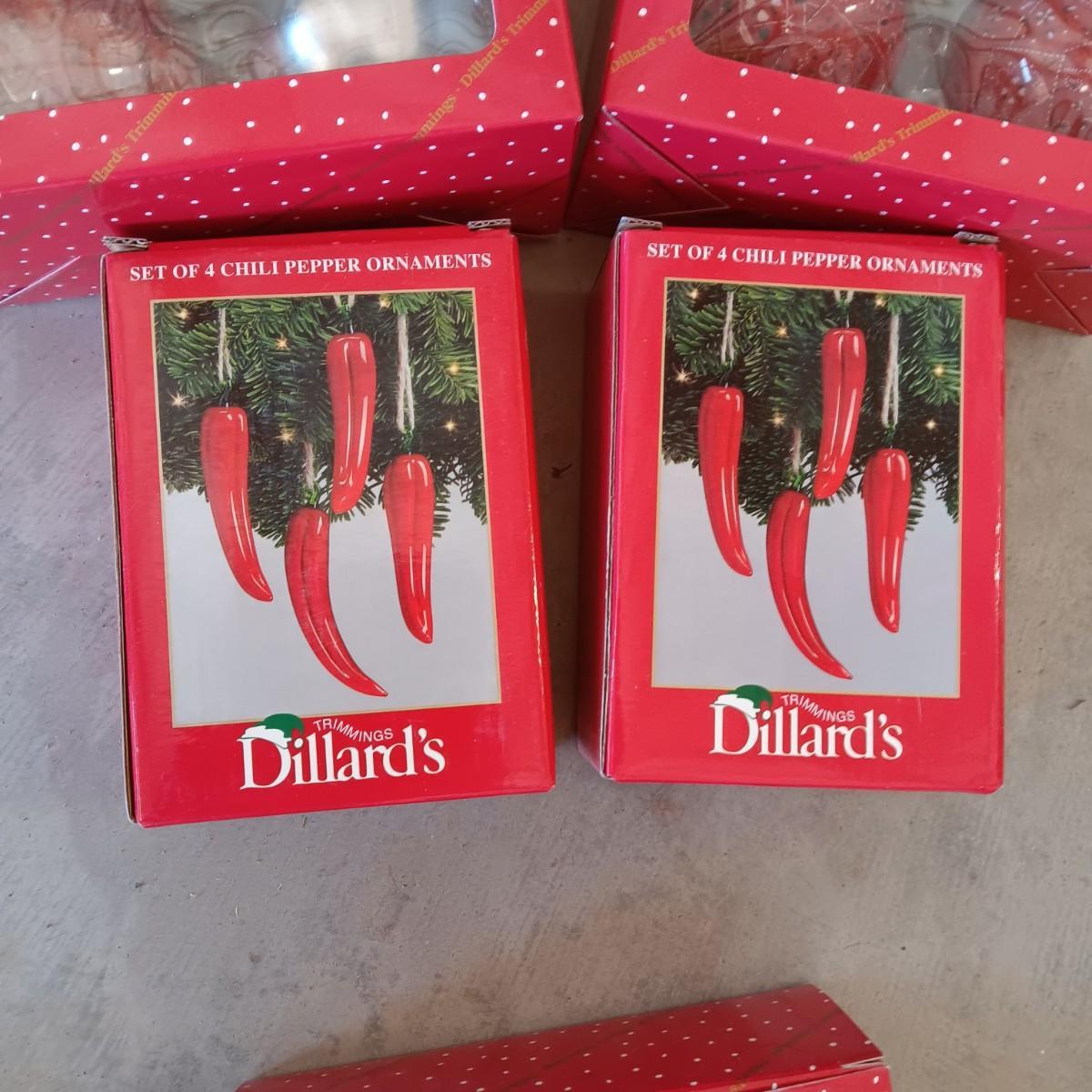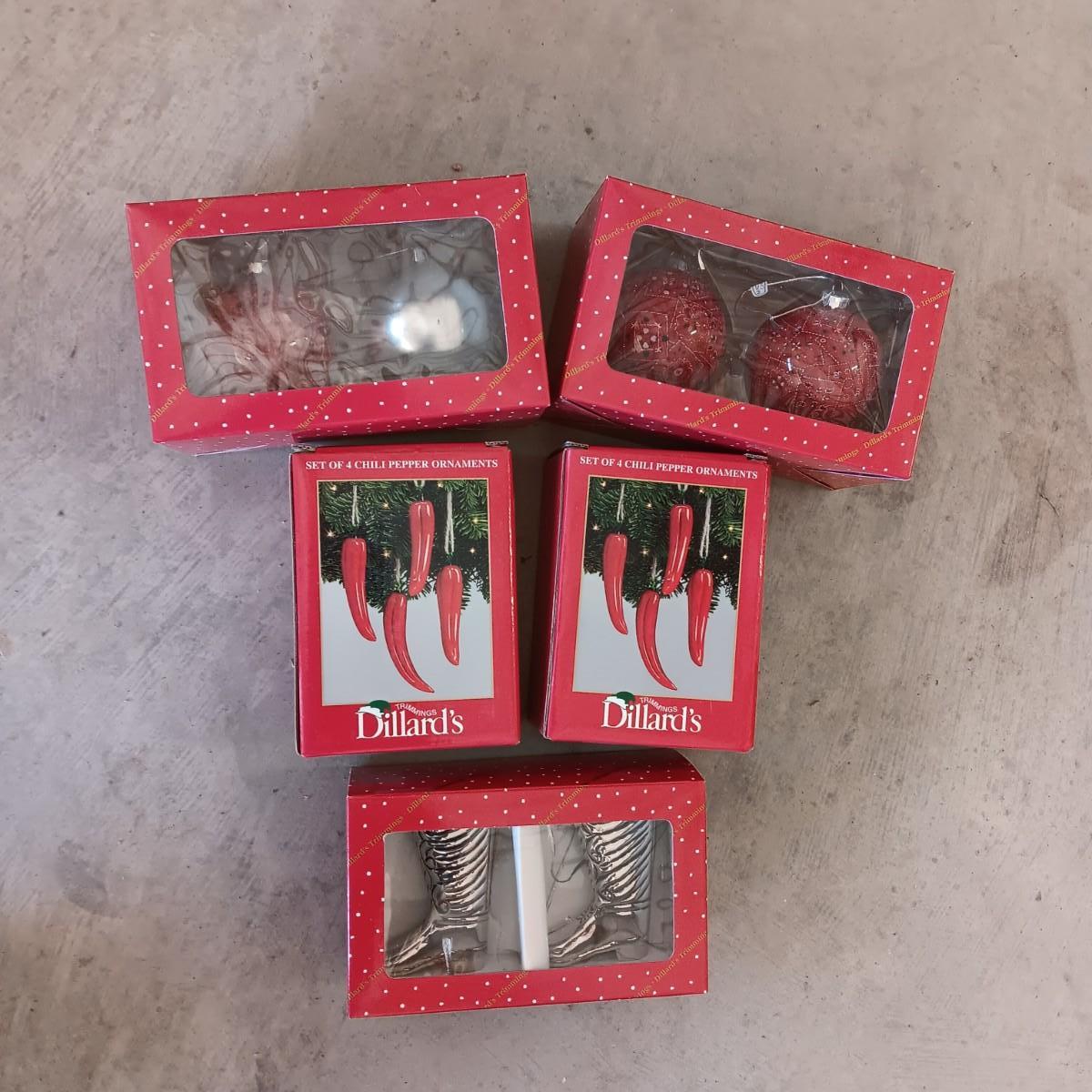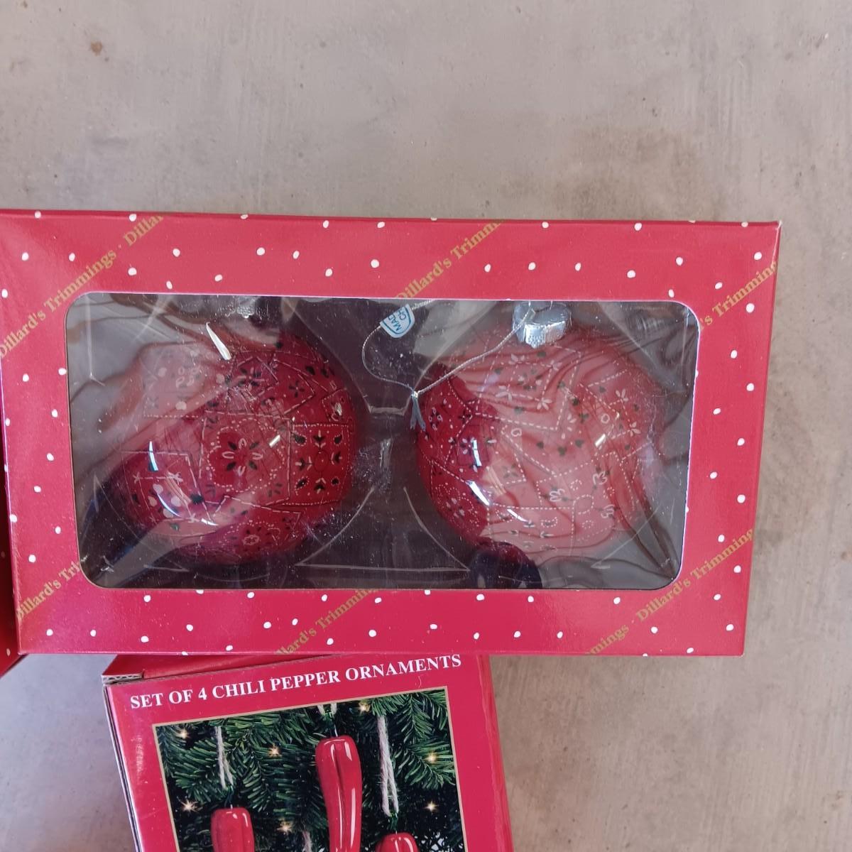 DILLARD'S RED CHILI PEPPERS, SANTAS BOOTS AND BANDANA ORNAMENTS
