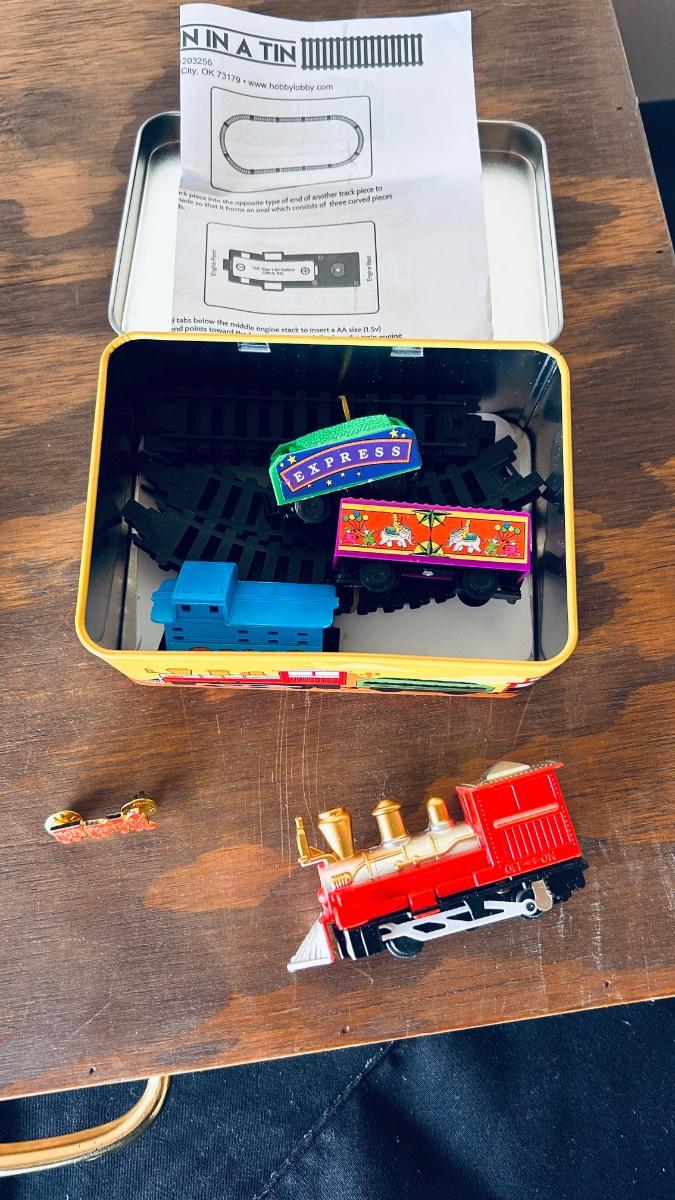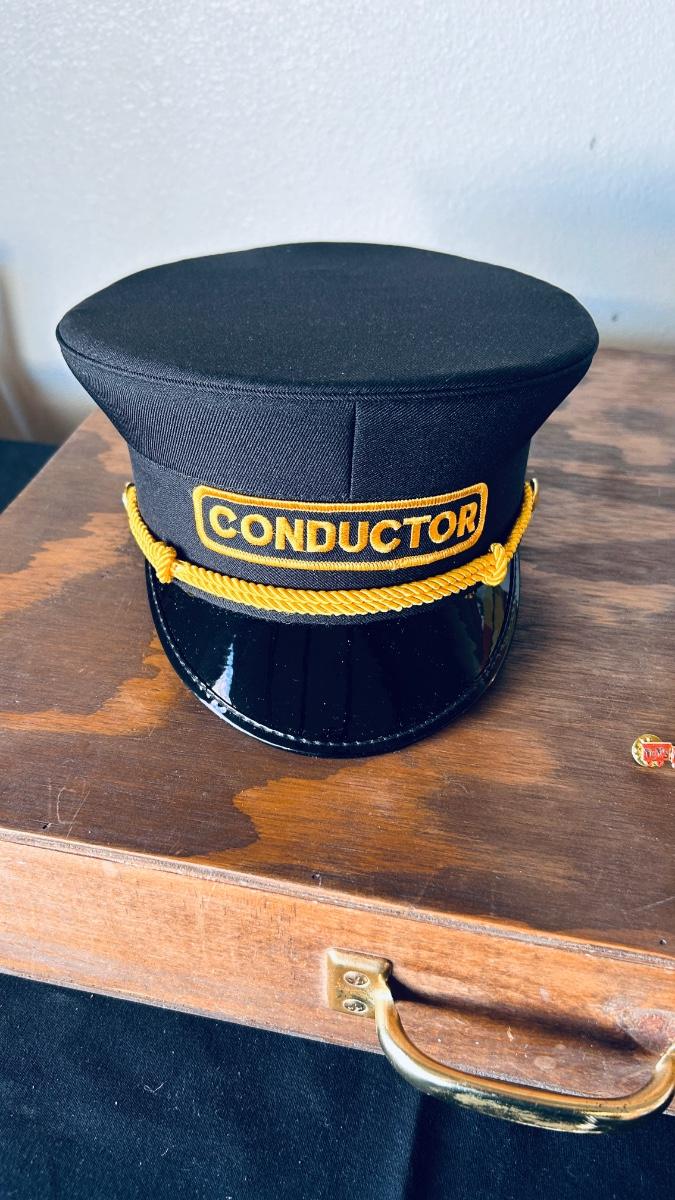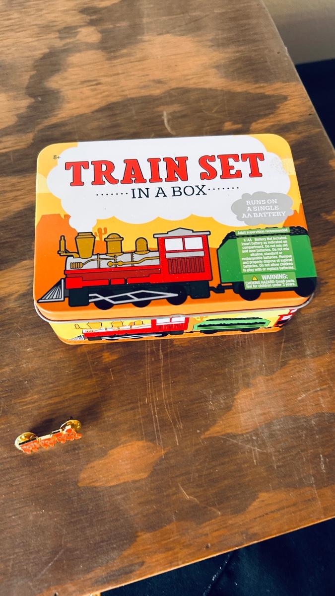 SUPER COOL CONDUCTORS HAT, MINI TRAIN SET IN A TIN AND WOODEN CRATE