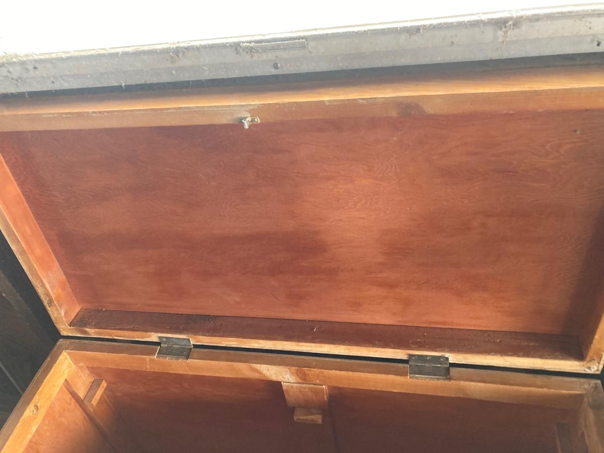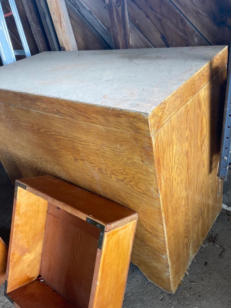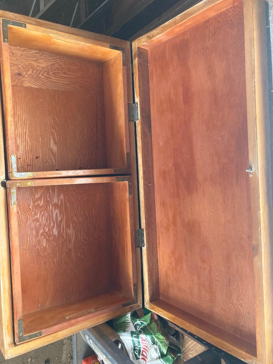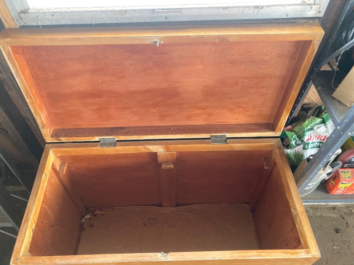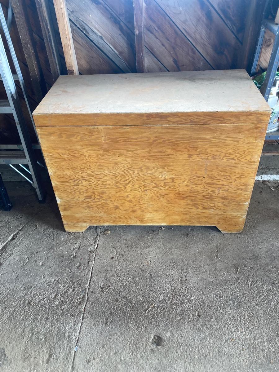 38-1/2” WIDE X 28-1/2” TALL X 18-1/2” DEEP WITH TWO STORAGE BOXES THAT NEST NICELY UP TO THAT ARE 16”x16” sq