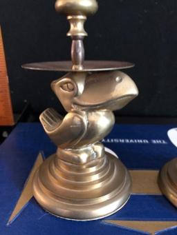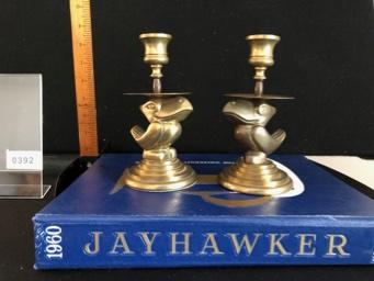 Super Cool Kansas University  KU Jayhawks Vintage Brass Candle Holders & 1960 Yearbook