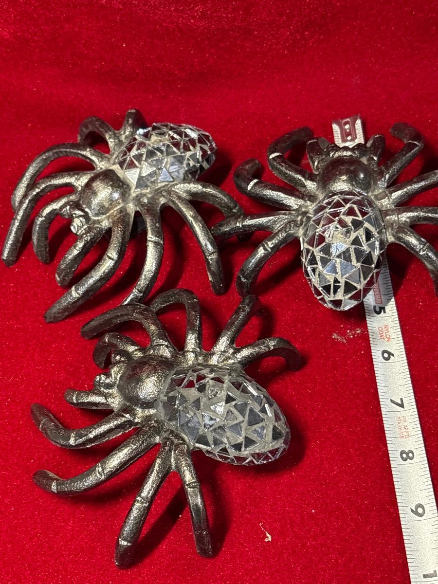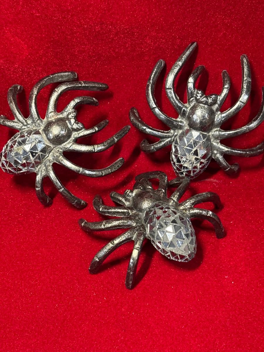 Three spider glitz wall decor, or table decor! Two have small mirror missing. See photos