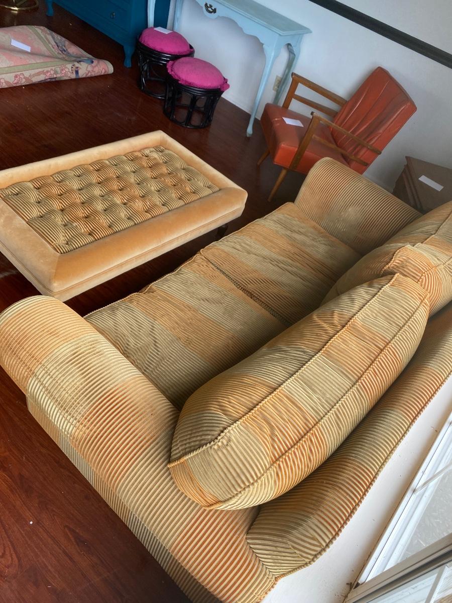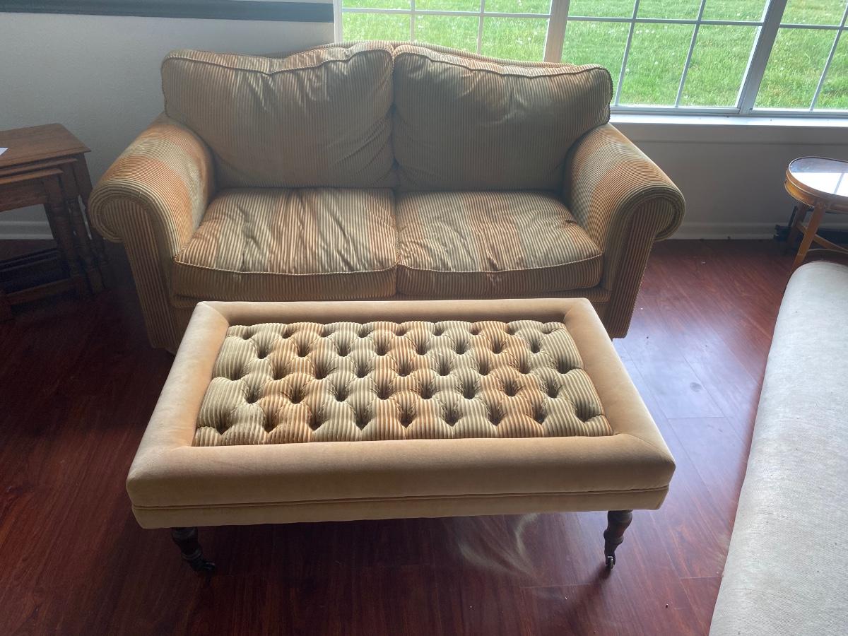 We love this comfy couch and ottoman- high quality furniture