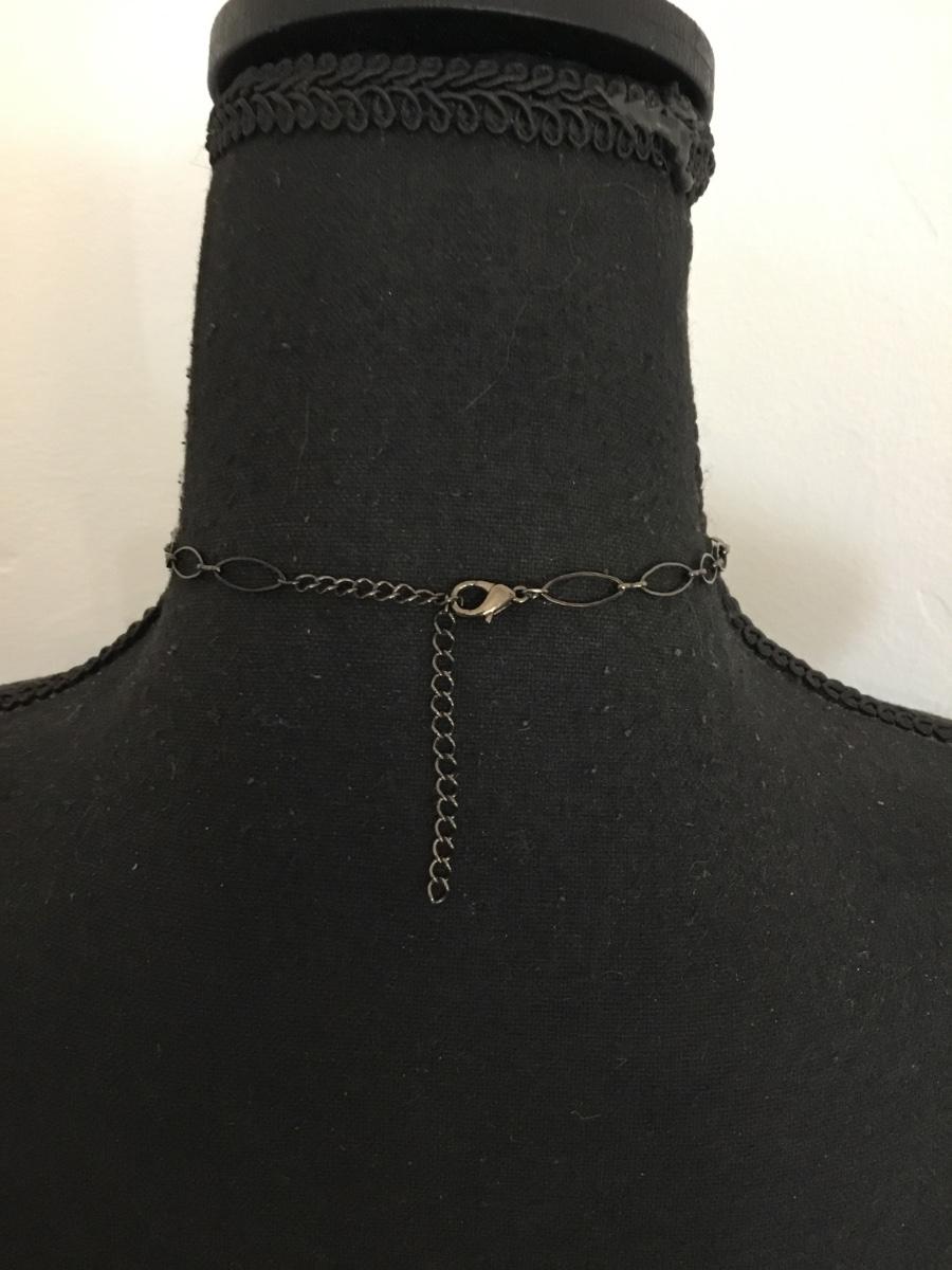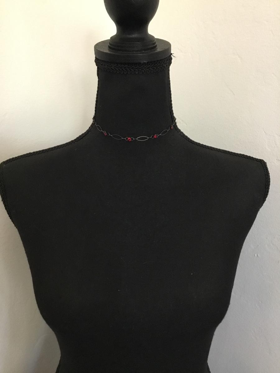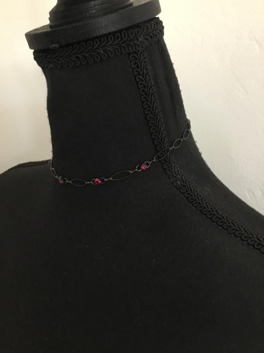 Super cute black chain, raspberry, pink, rhinestone choker necklace