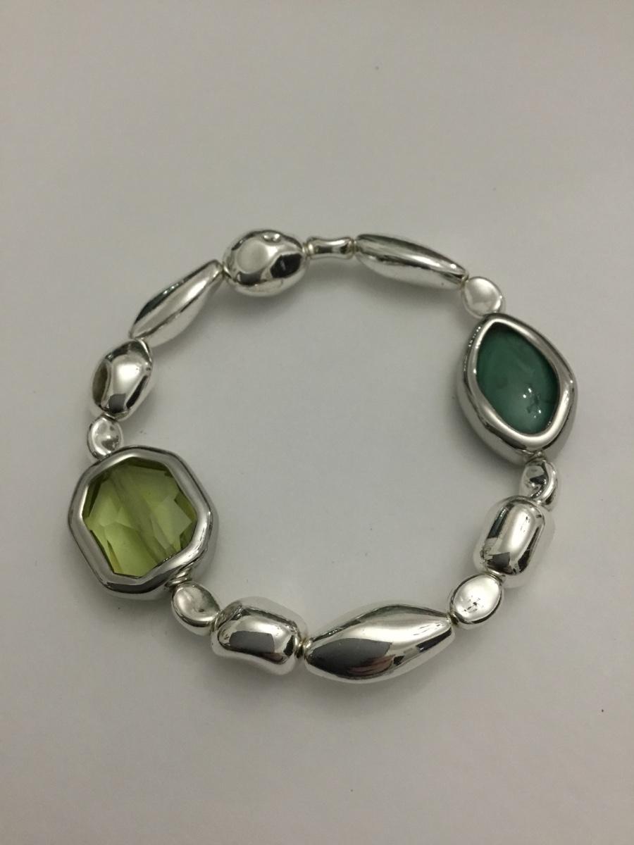 Super cute chrome, metal bead, stone, and faceted glass stretch bracelet