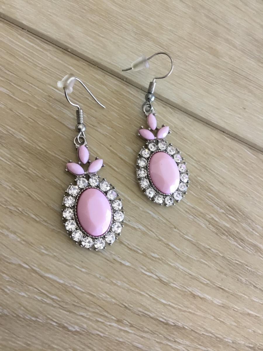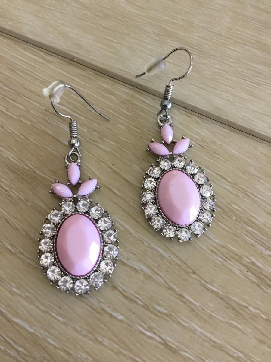 Super cute cotton candy, pink with rhinestones drop dangle earrings