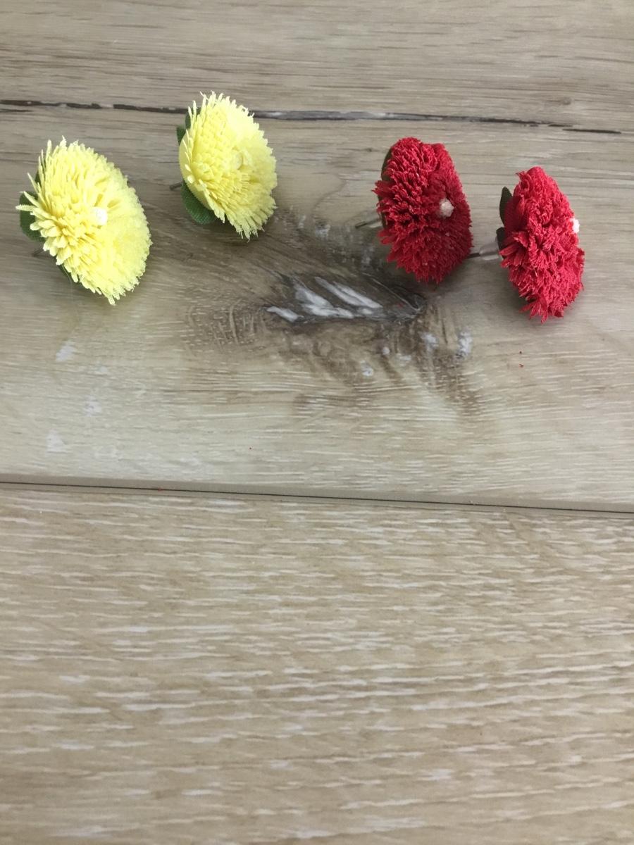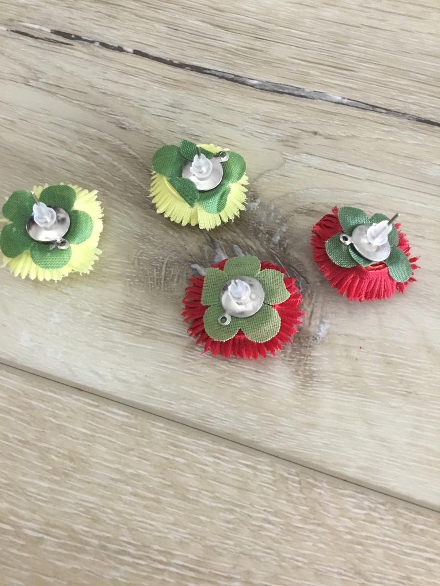 Super cute fabric, flower, earrings, yellow and red