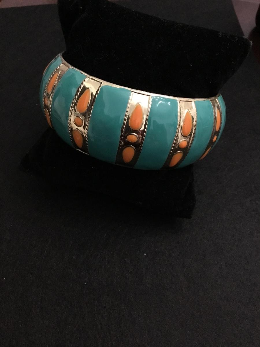 Super cute, gold tone BoHo enamel bangle bracelet