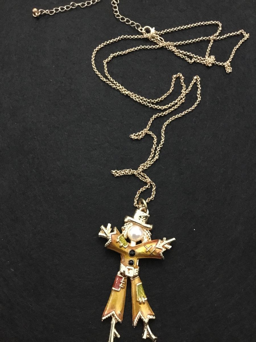 Super cute, gold tone, scarecrow pendant, fashion, necklace