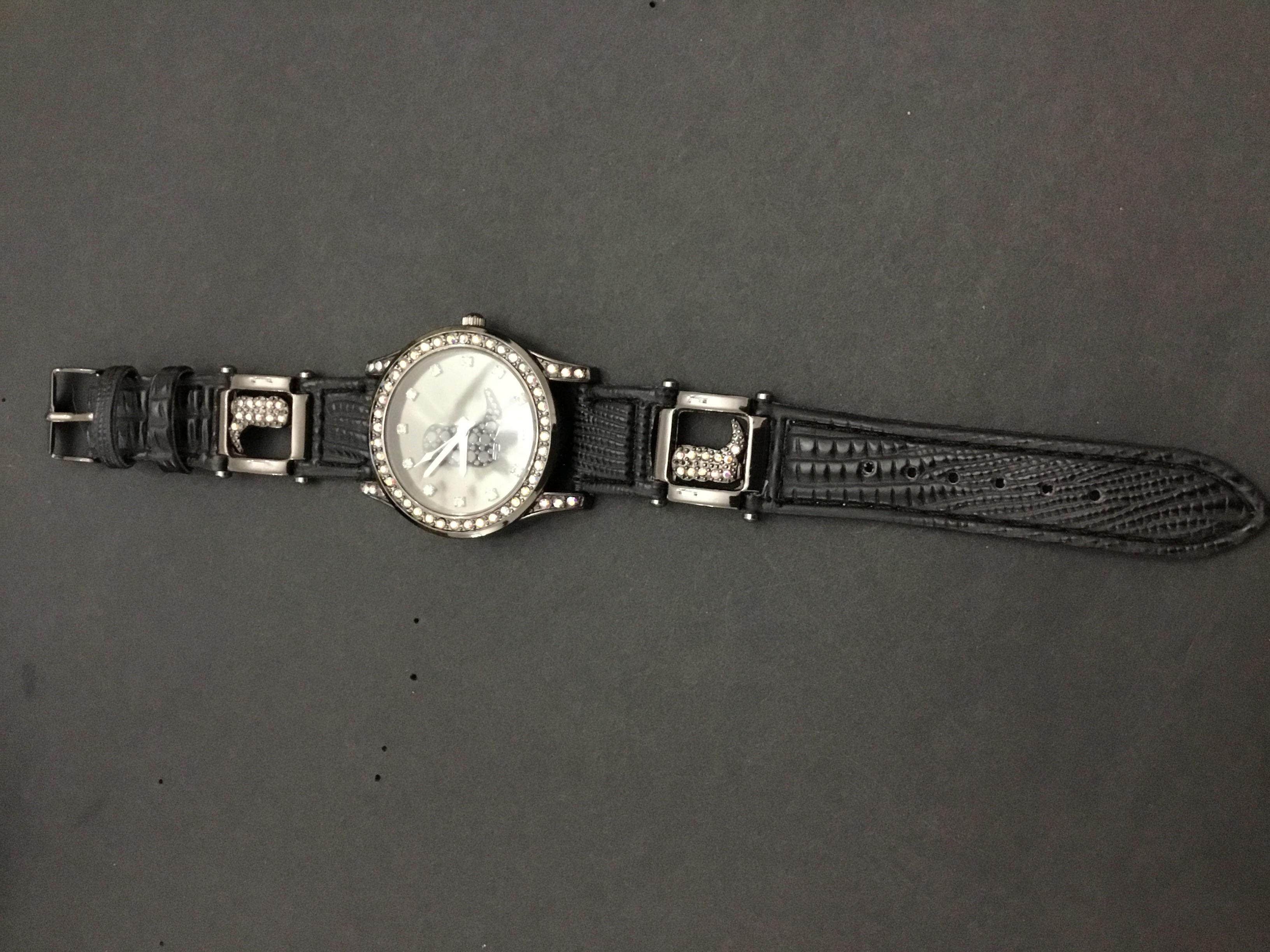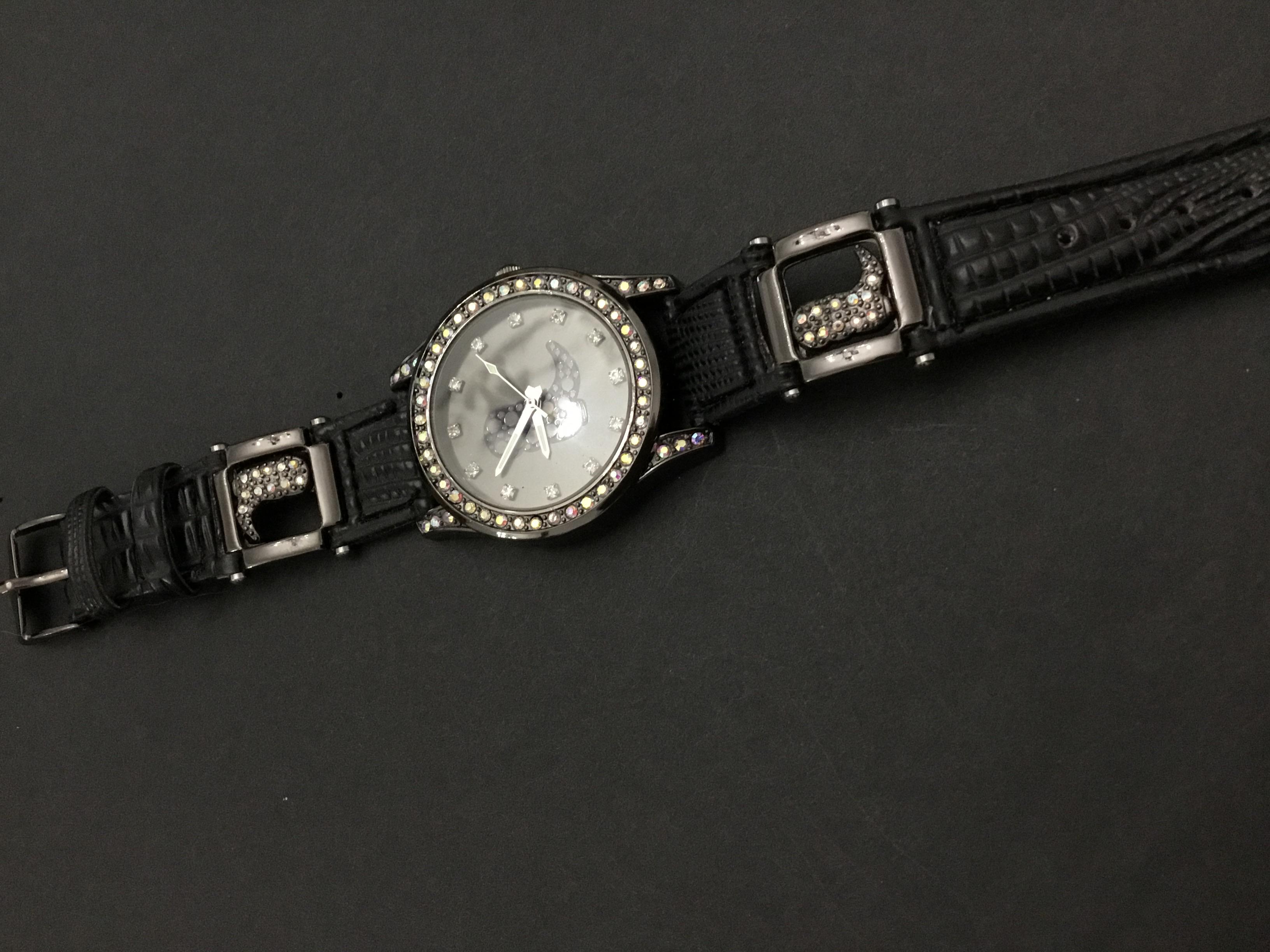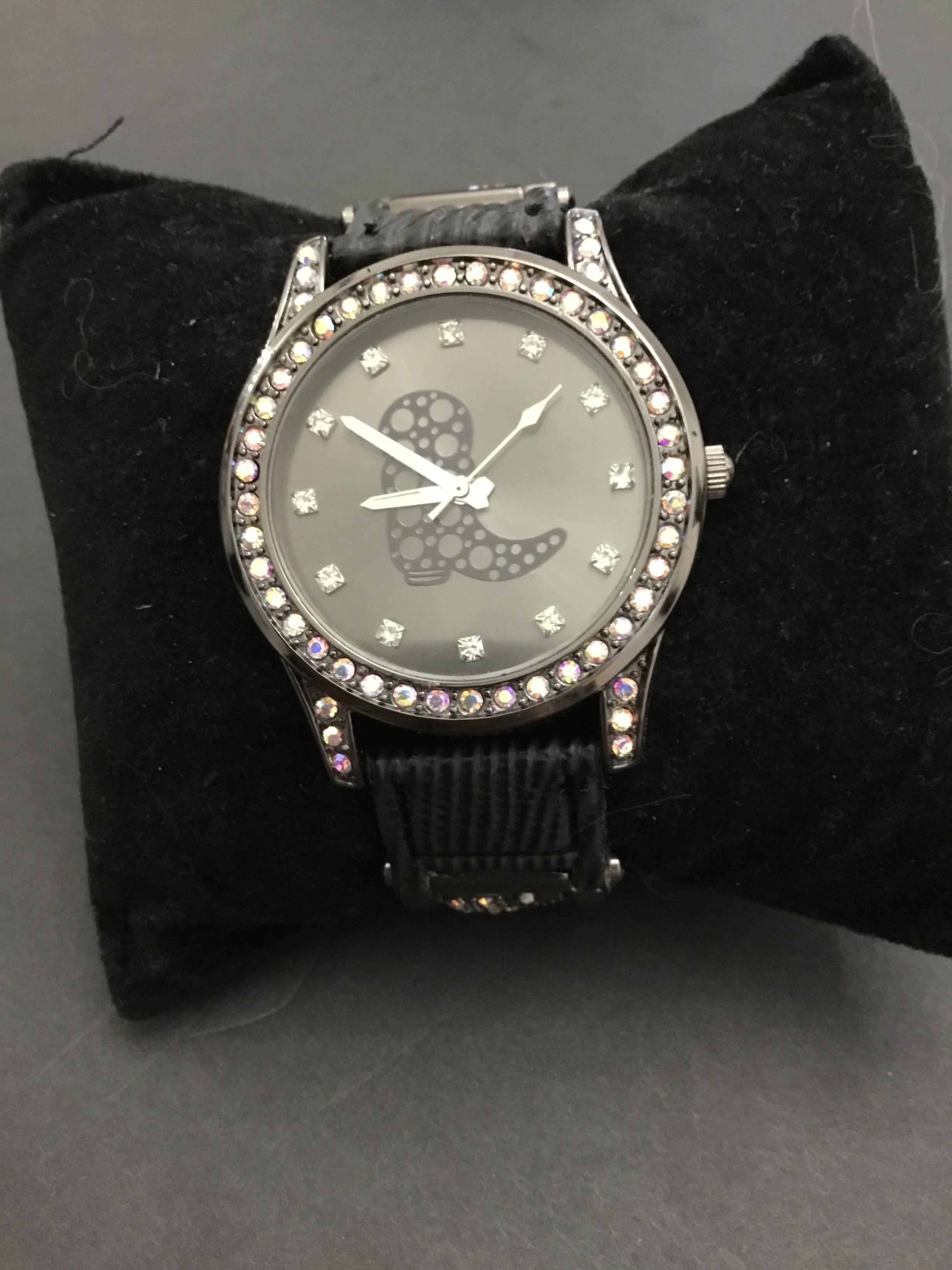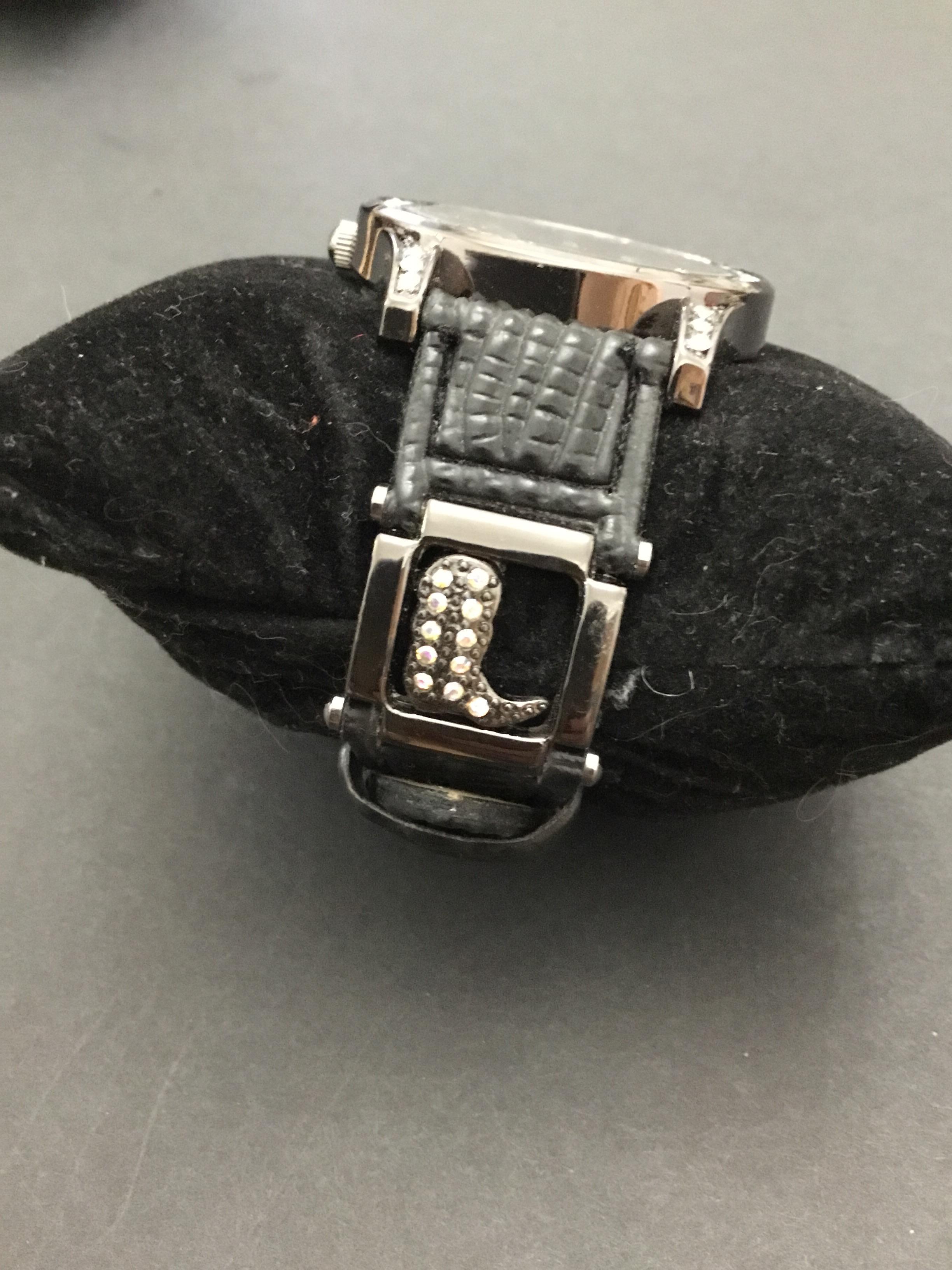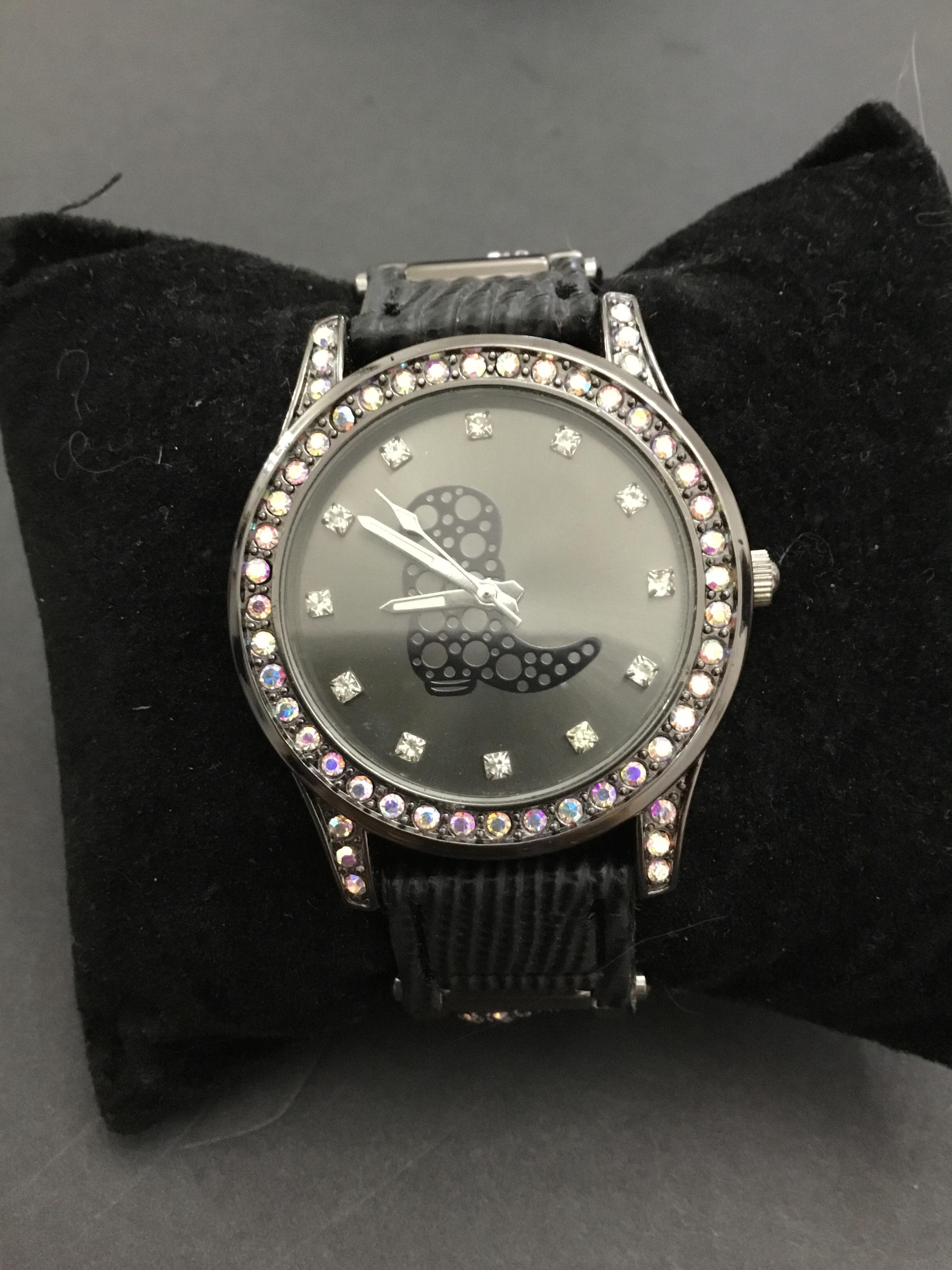 Super cute, gunmetal, gray, iridescent, rhinestone cowboy boot watch working new battery
