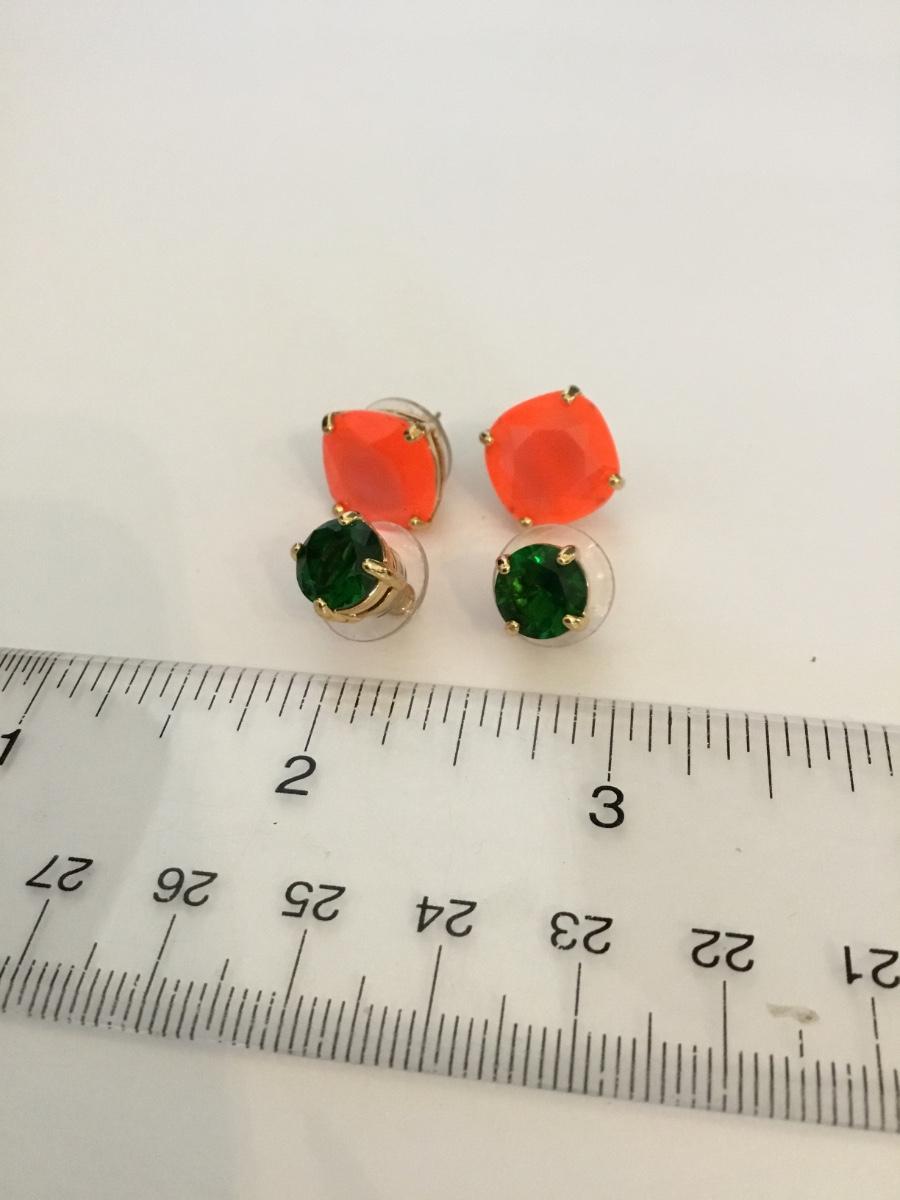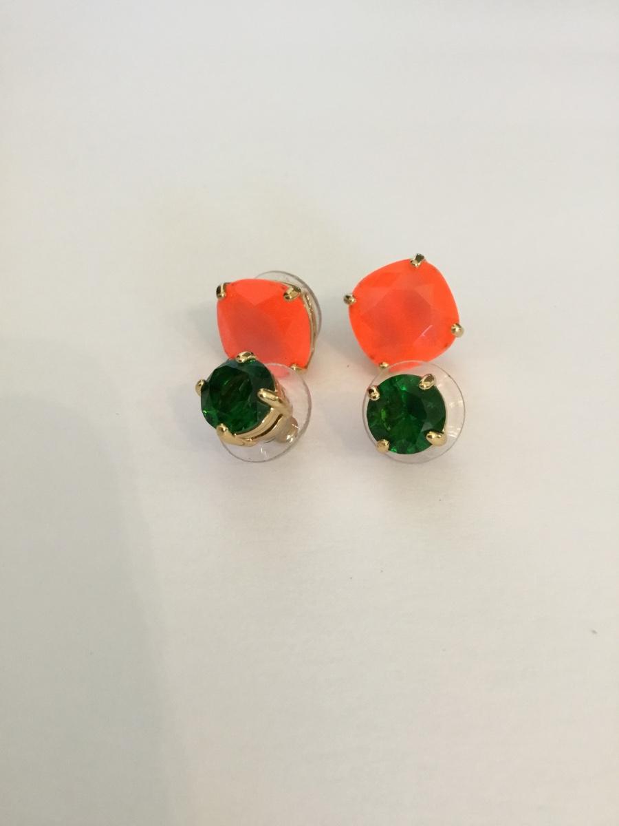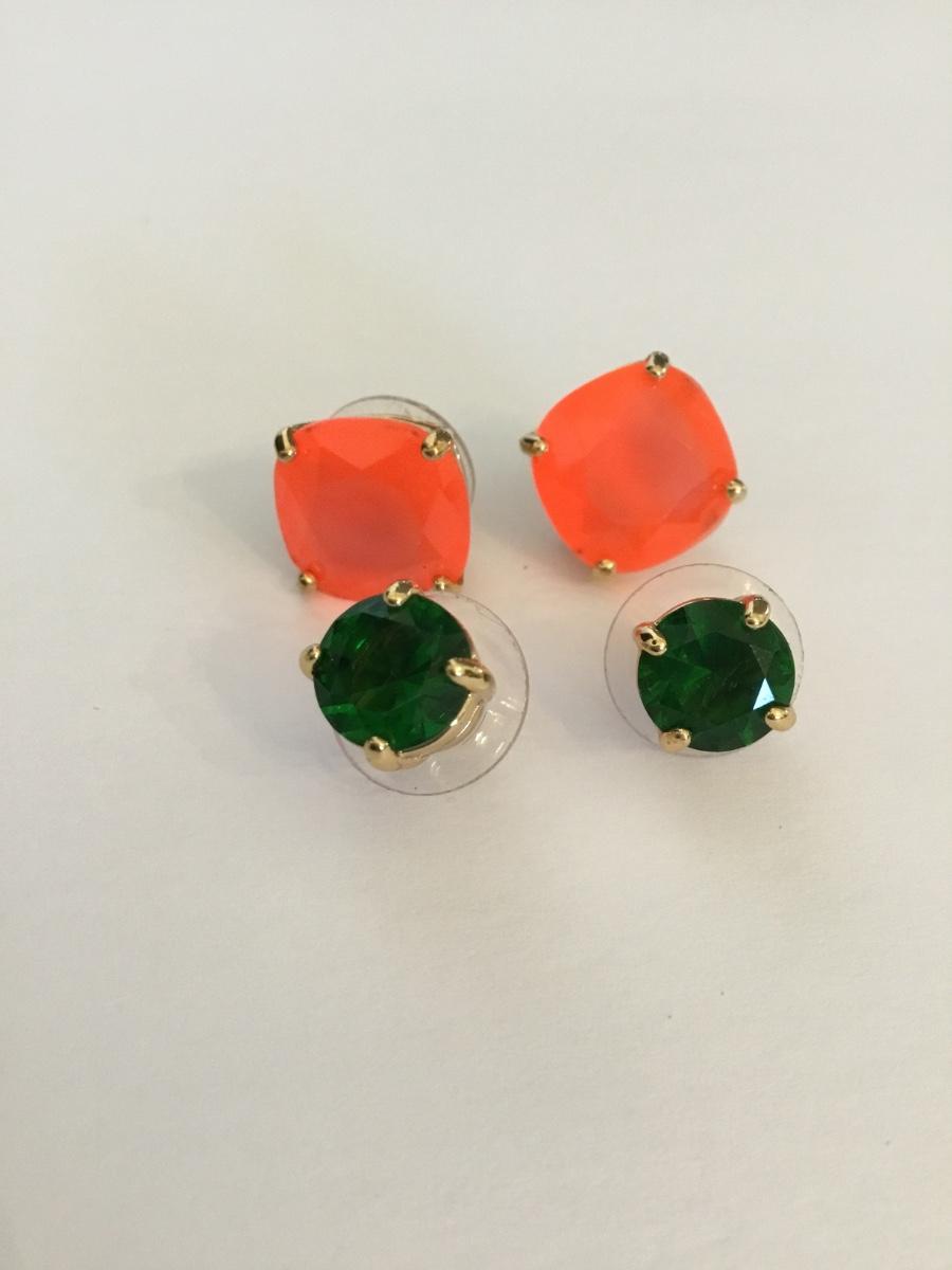 Super cute highlighter, orange, large and emerald green rhinestone stud earrings