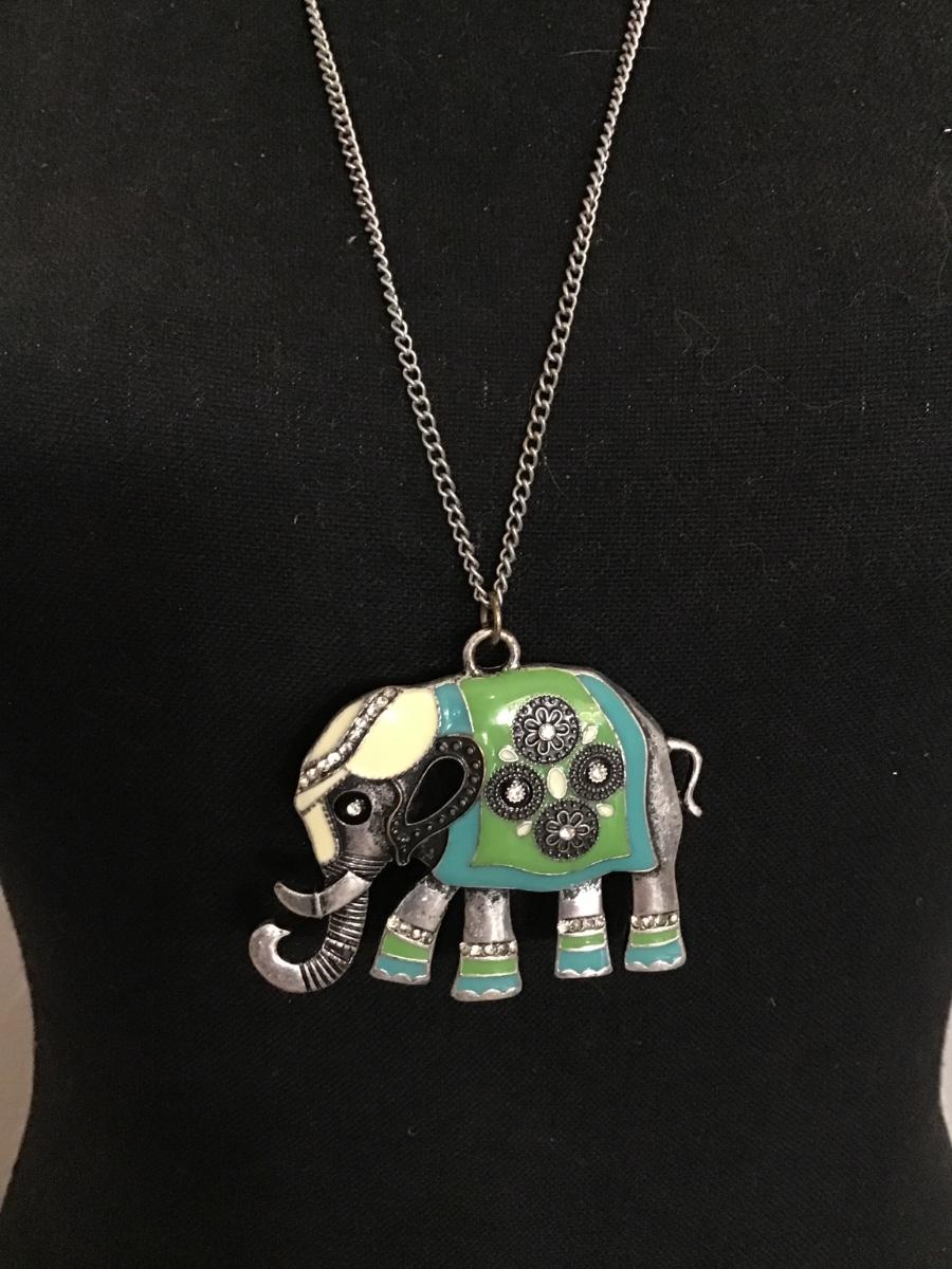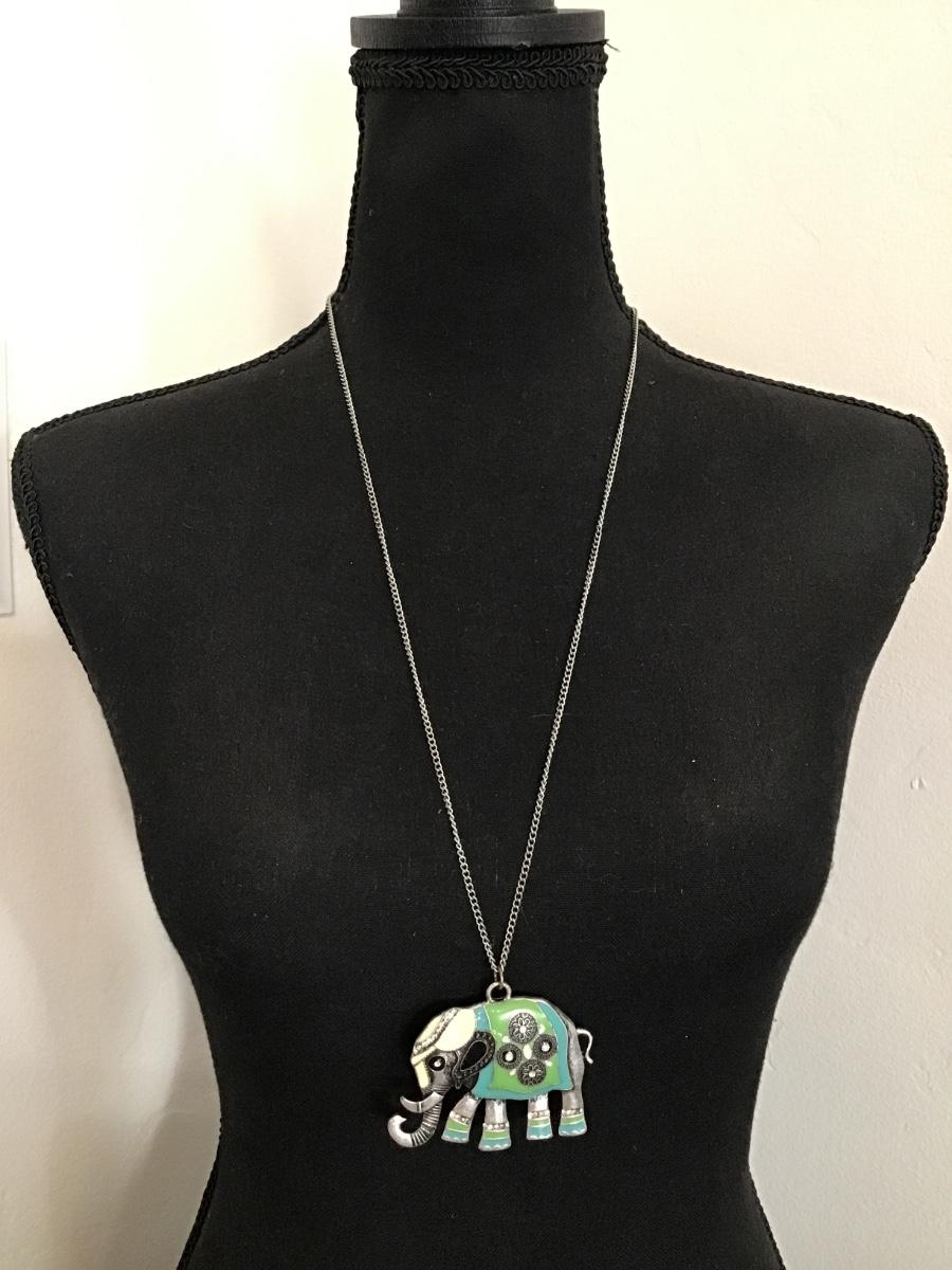 Super cute, large silver tone, enamel elephant, pendant statement, necklace