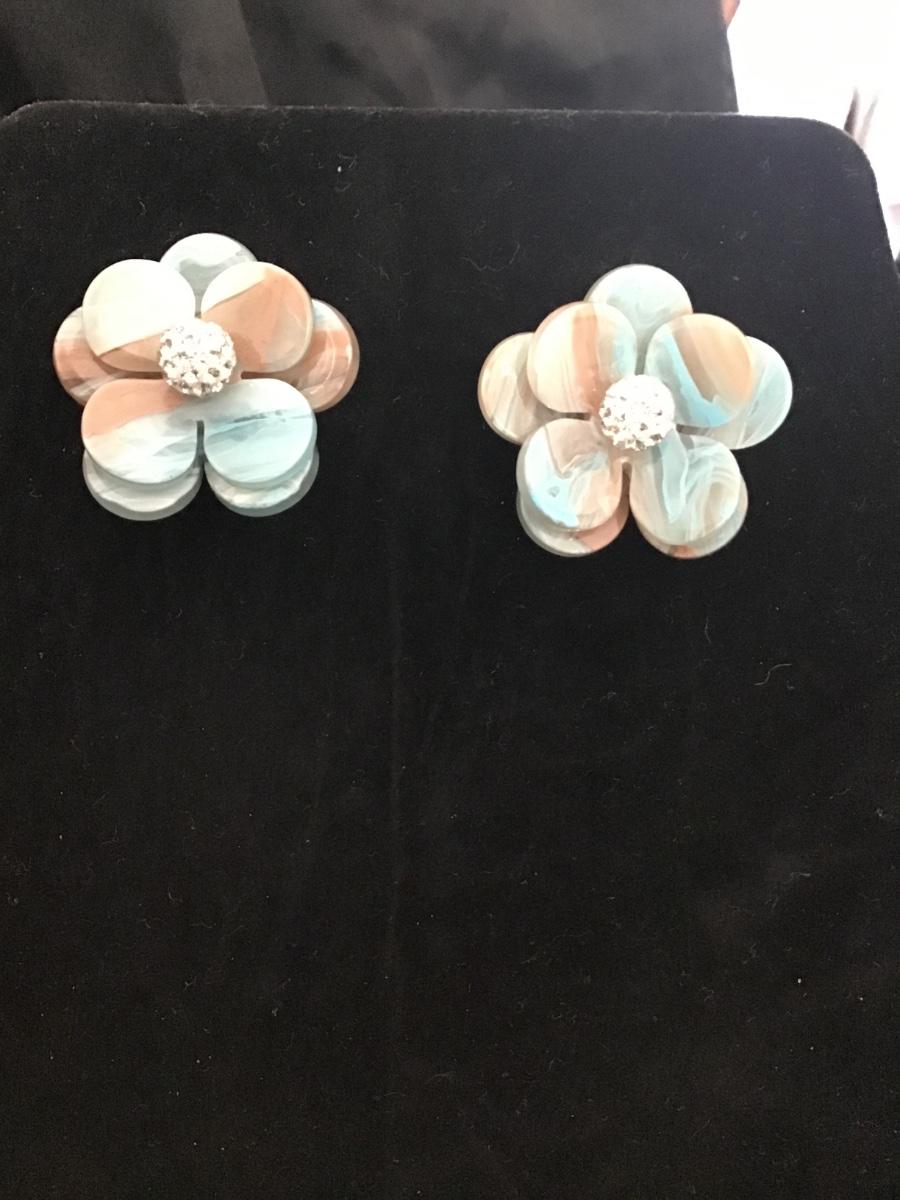Super cute light blue light brown Swirl stud airings