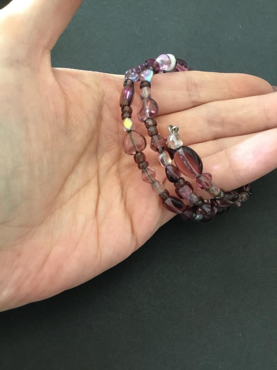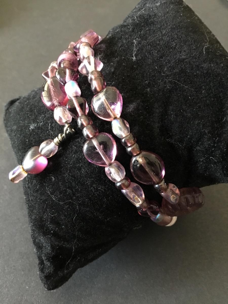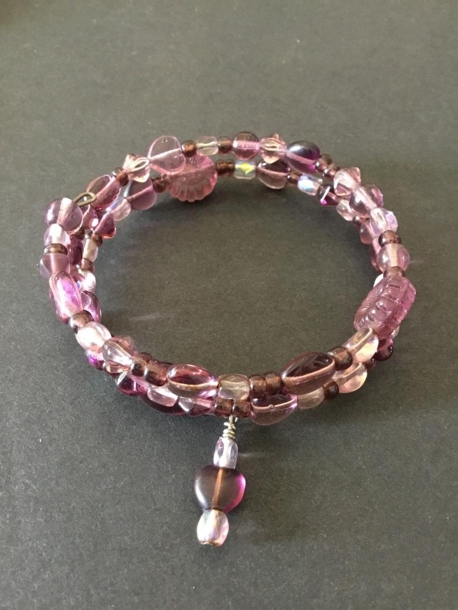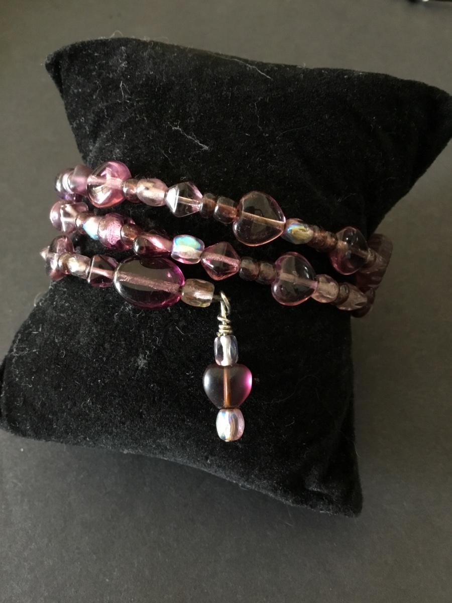Super cute light, purple glass, bead, wrap, bracelet, heart charm