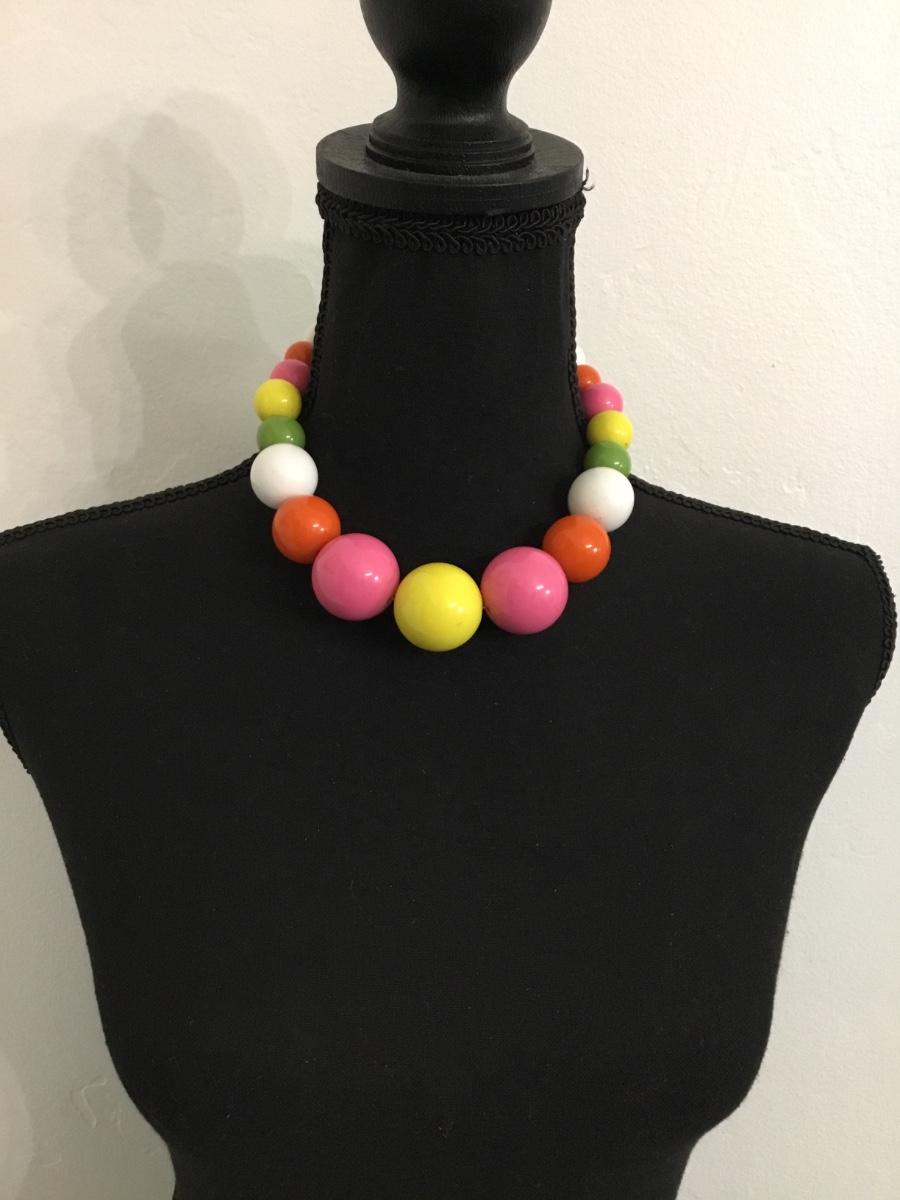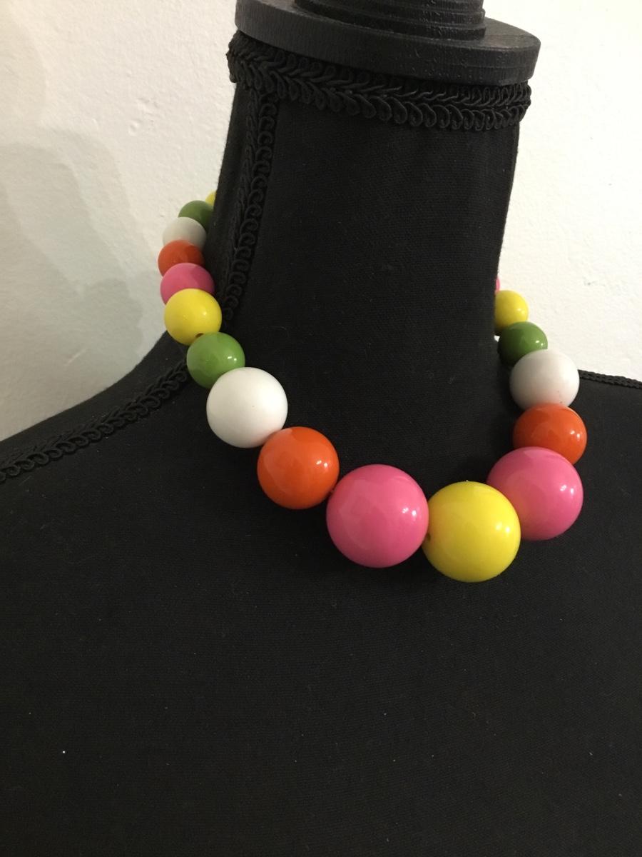 Super cute, mid century large chunky multicolor, beaded fashion, statement, necklace
