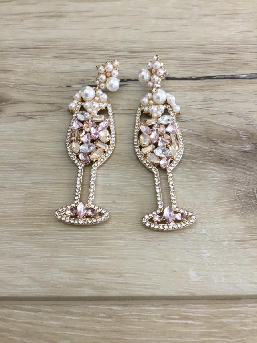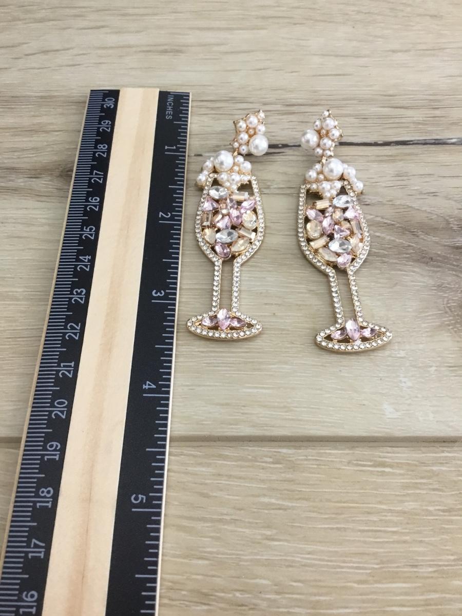 Super cute pearl and crystal bubbly champagne glass earrings