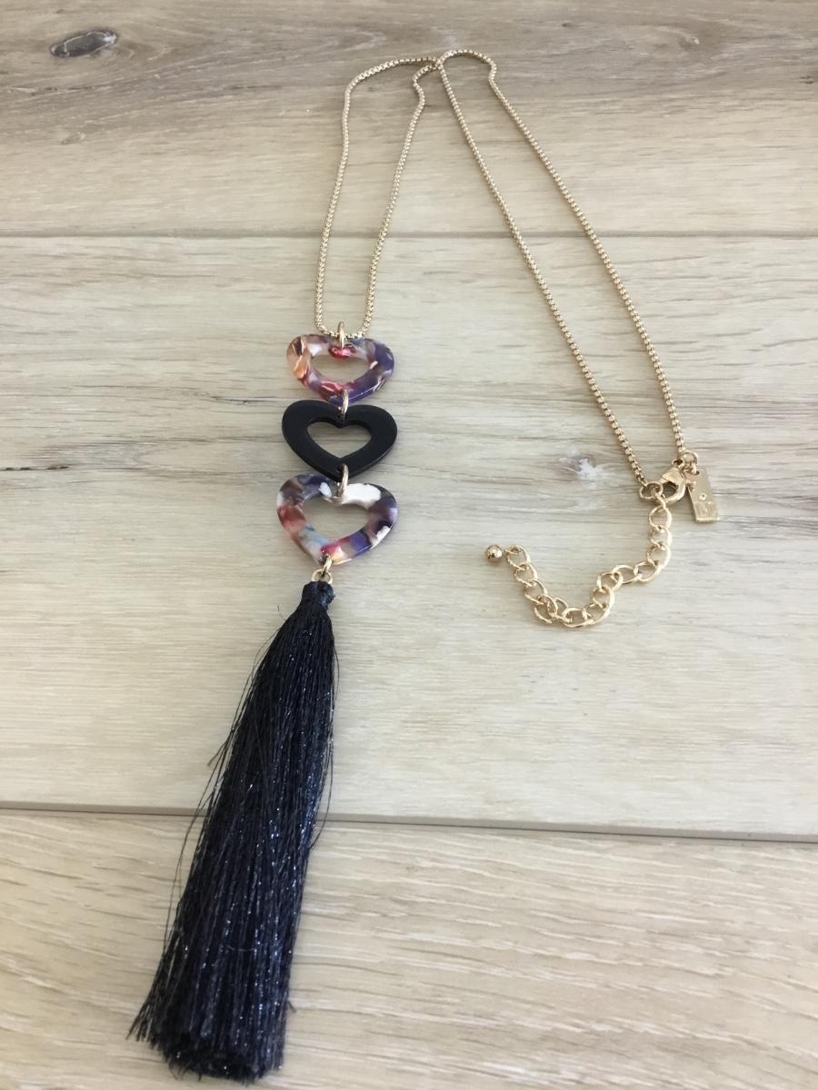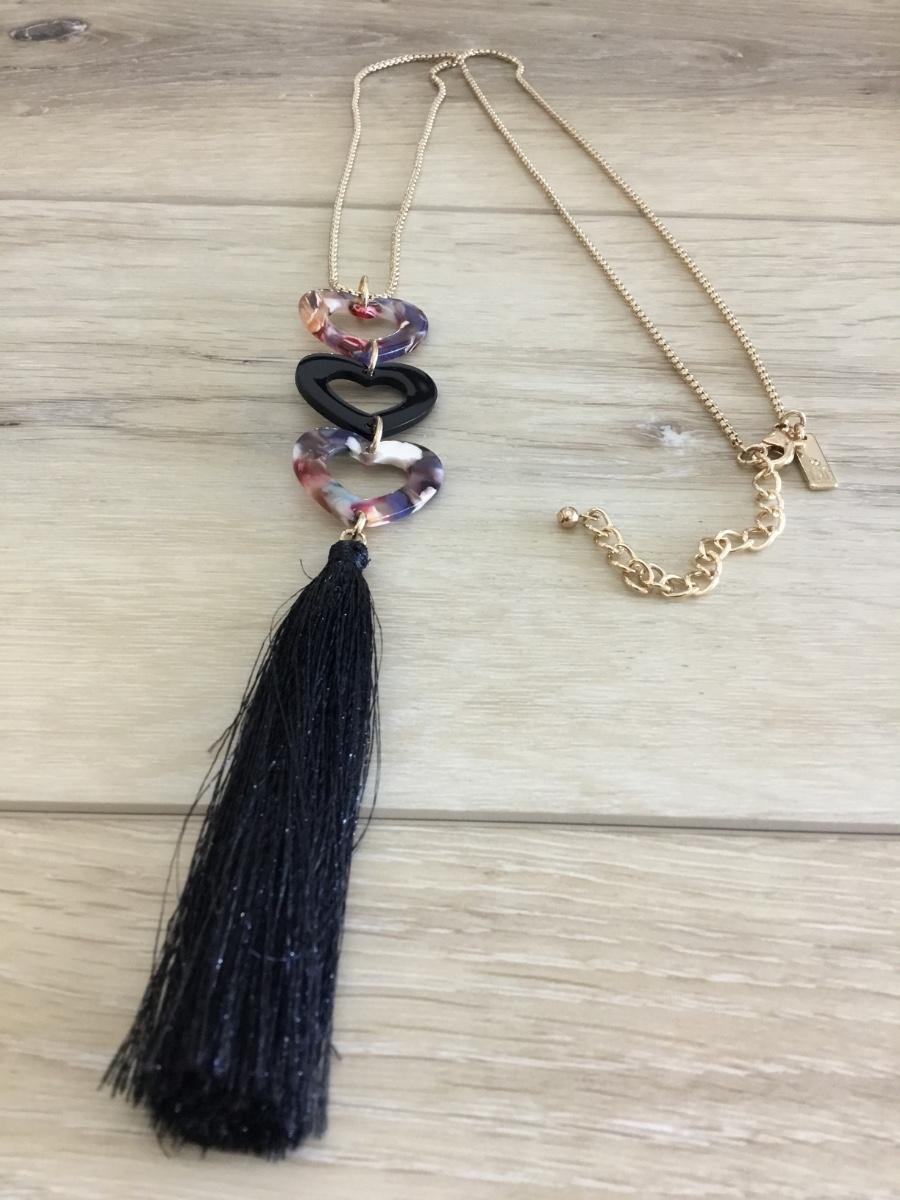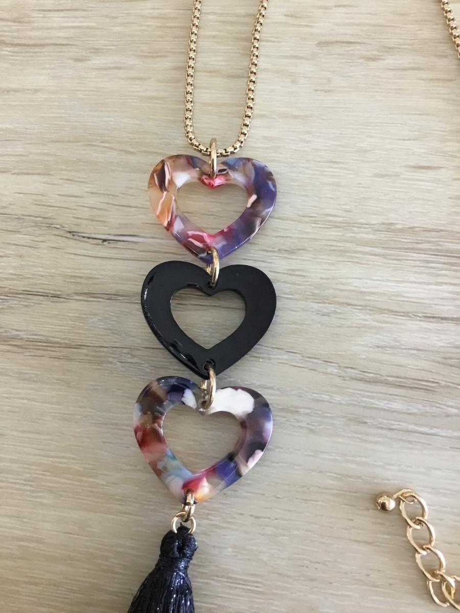 Super cute Resin heart, gold, toned, black, tassel necklace