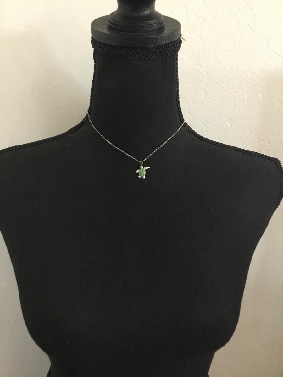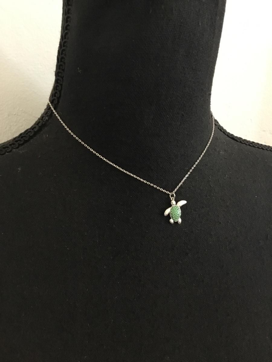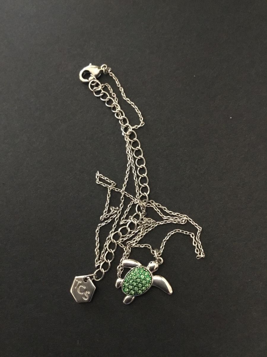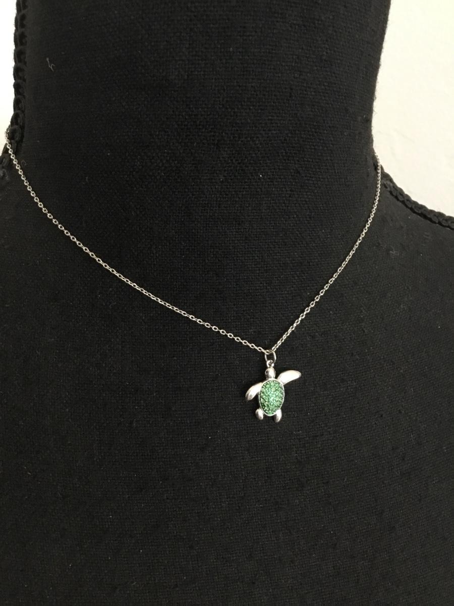 Super cute, silver plated, turtle, crystal rhinestone necklace