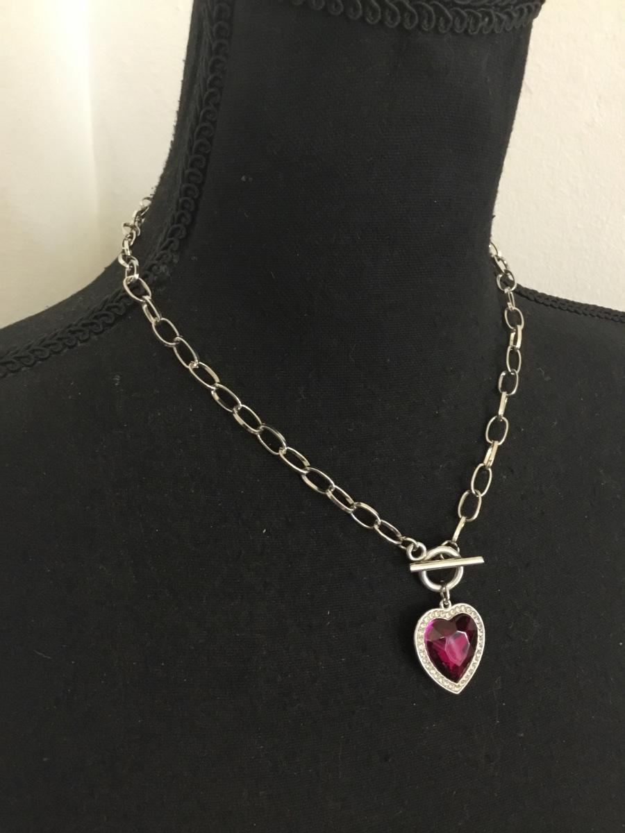 Super cute Silver tone, Purple Heart, rhinestone toggle necklace