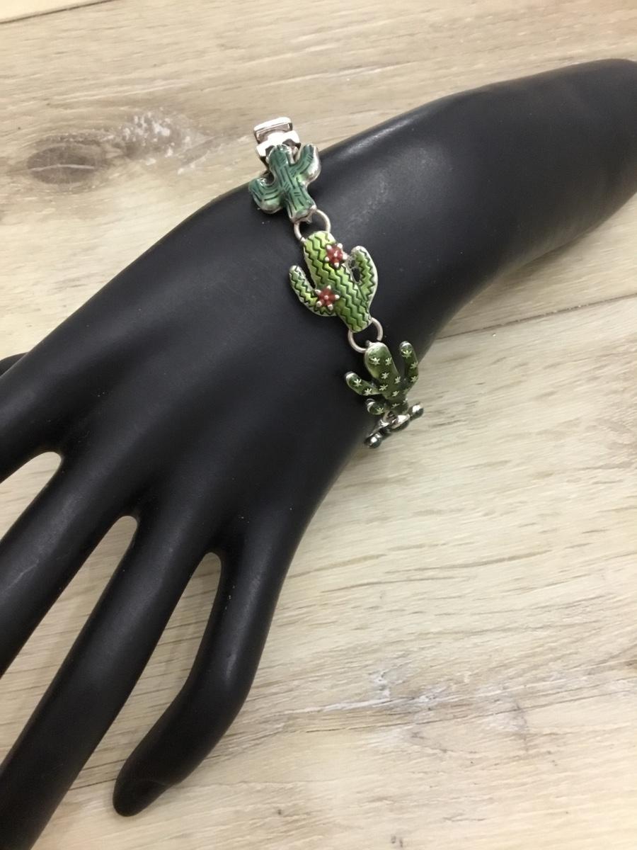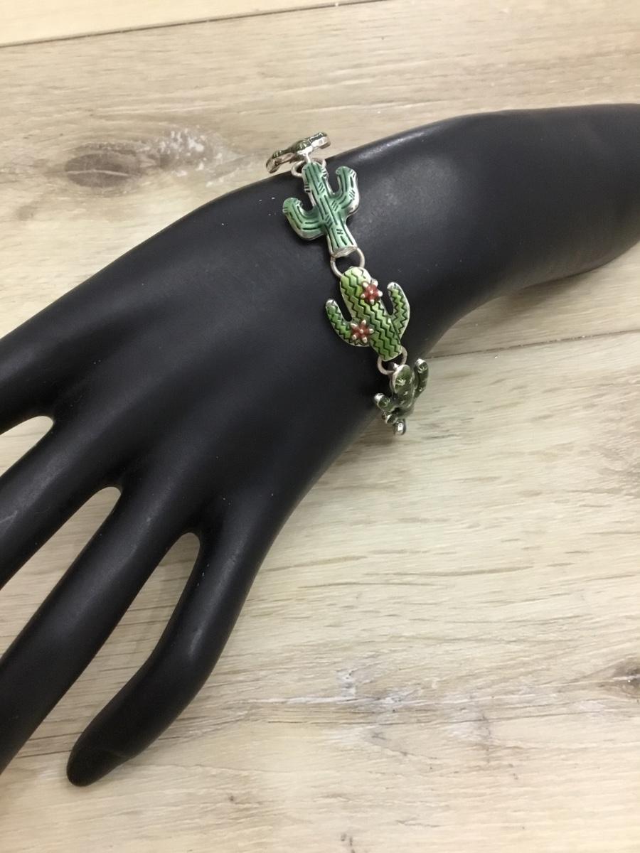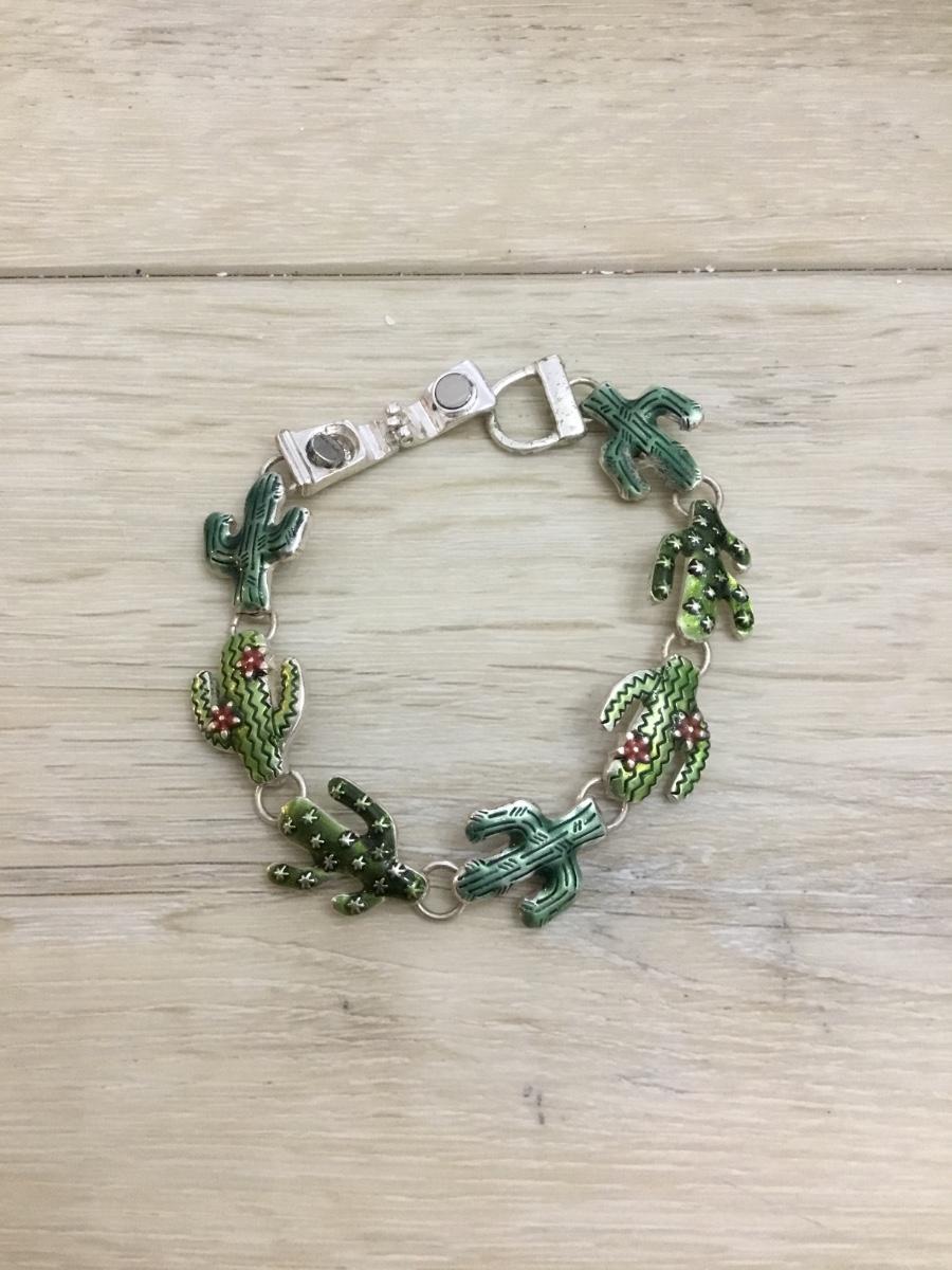 Super cute, silver toned, enamel, cactus, magnetic fashion bracelet