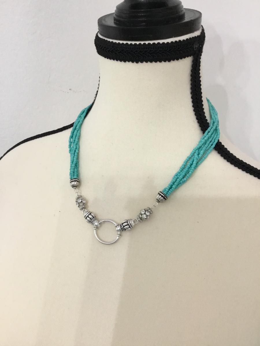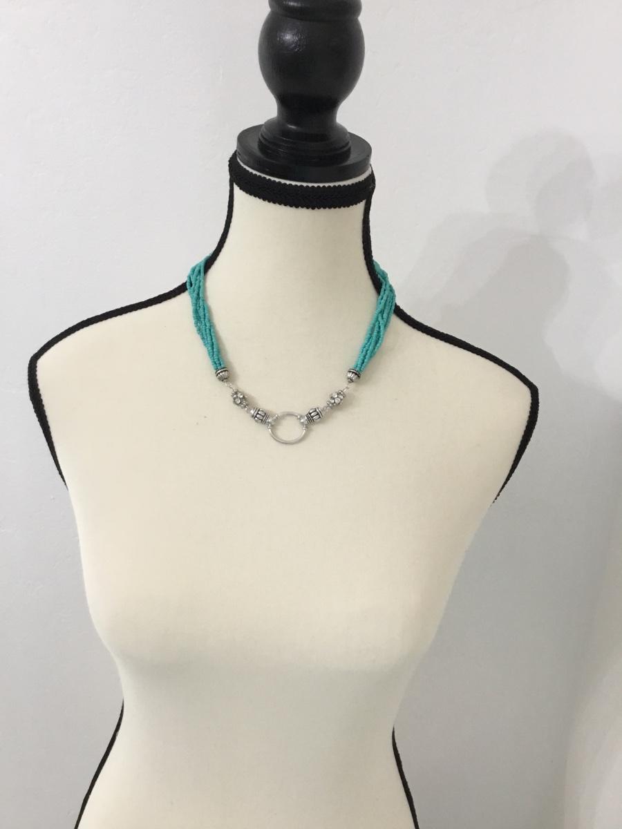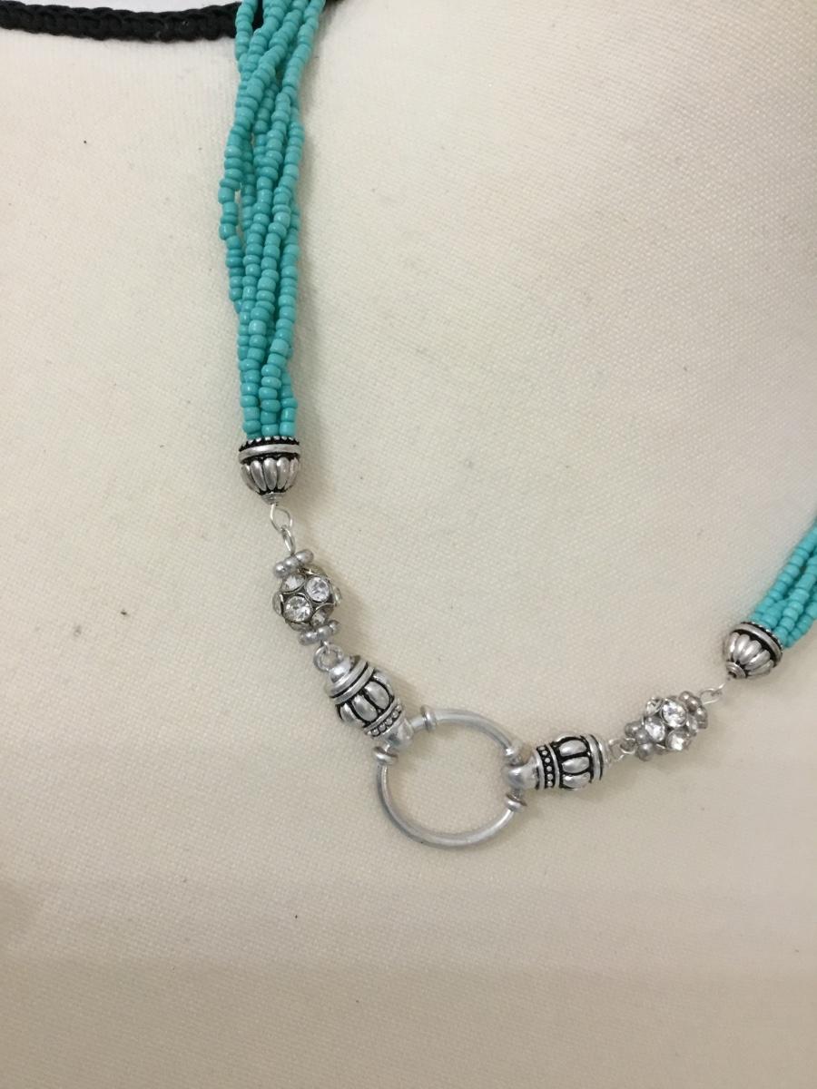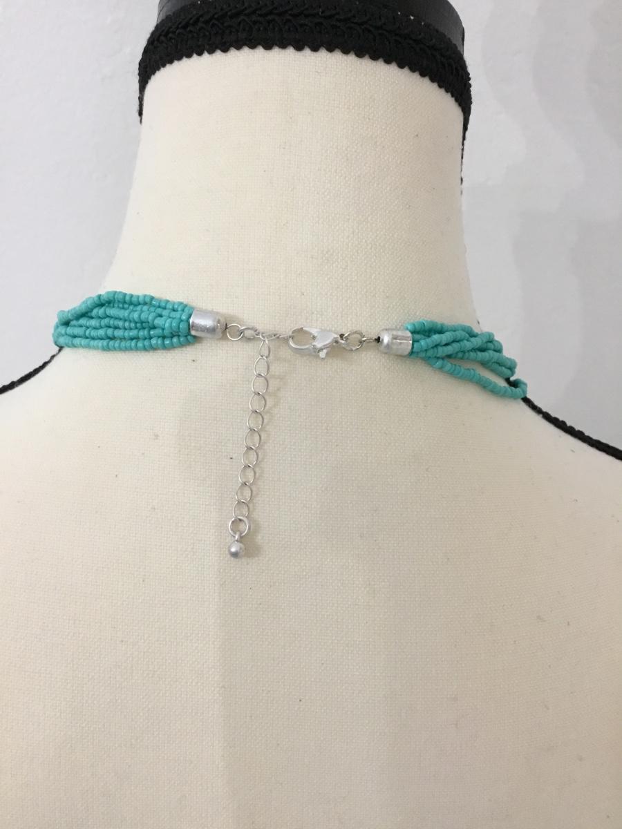 Super cute, silver toned, turquoise, seed bead fashion necklace