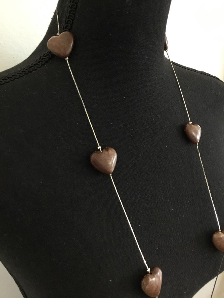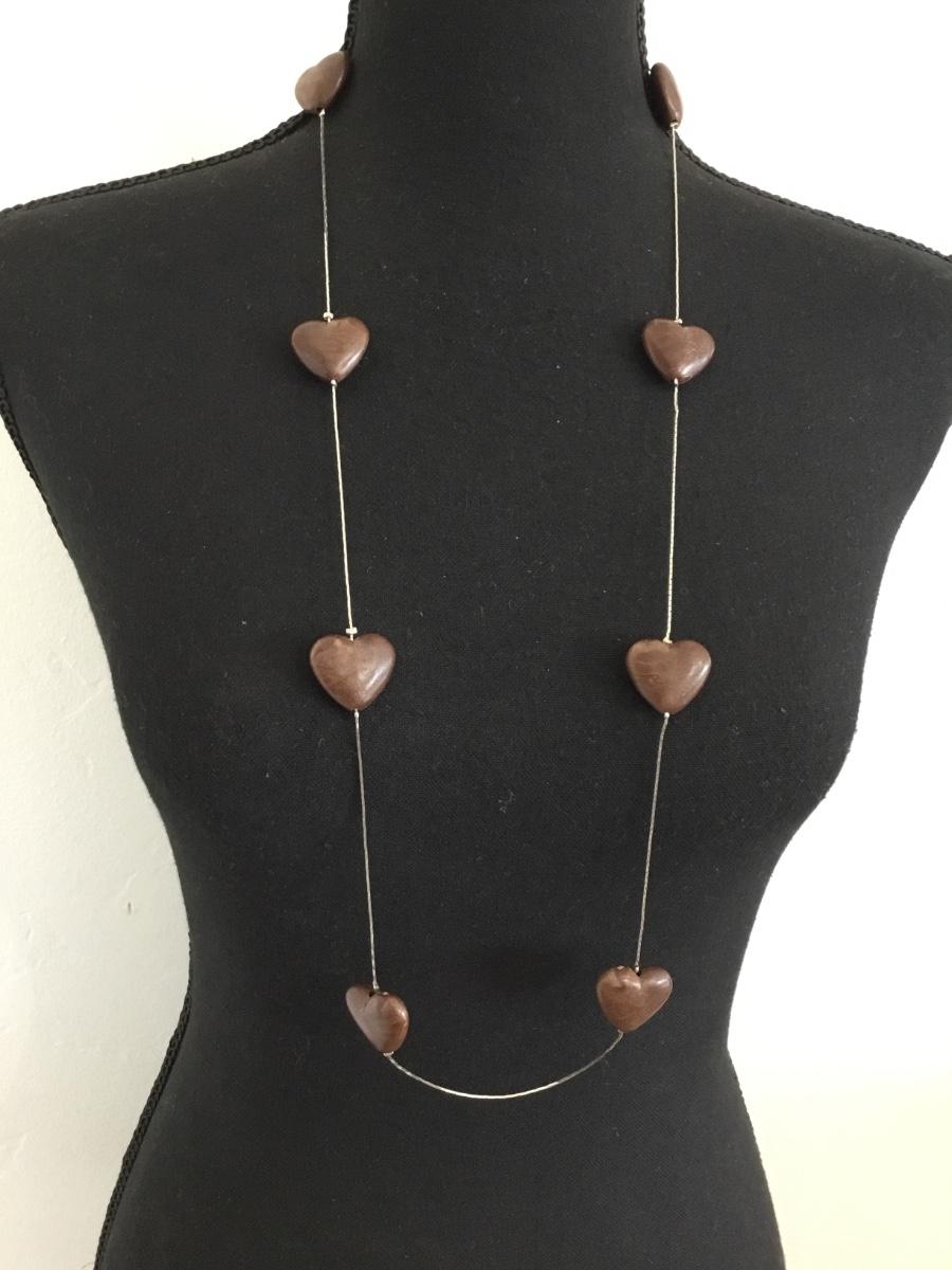 Super cute Silver-tone , wooden heart fashion necklace
