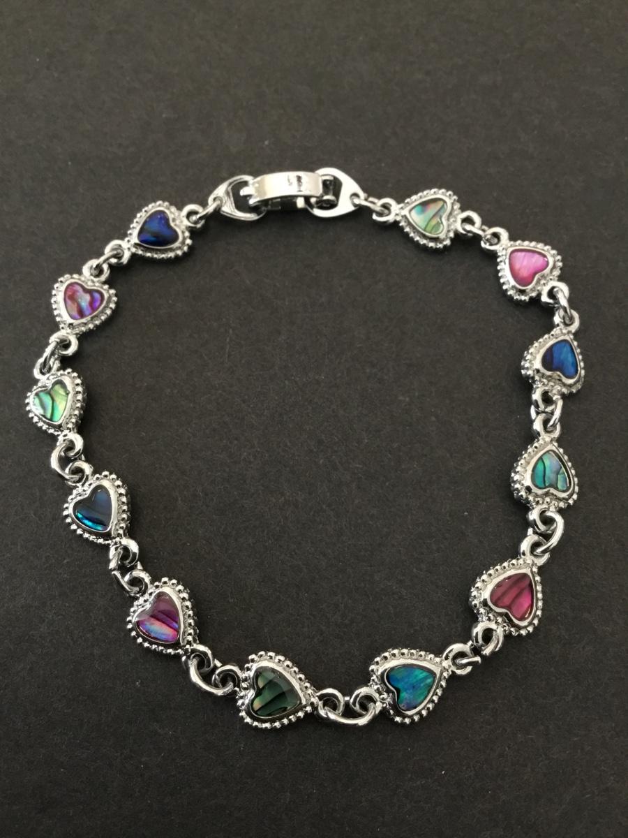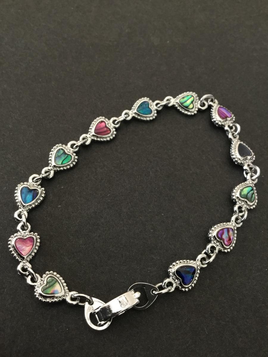 Super cute very nice silver toned multicolored Abalone Shell heart, tennis bracelet