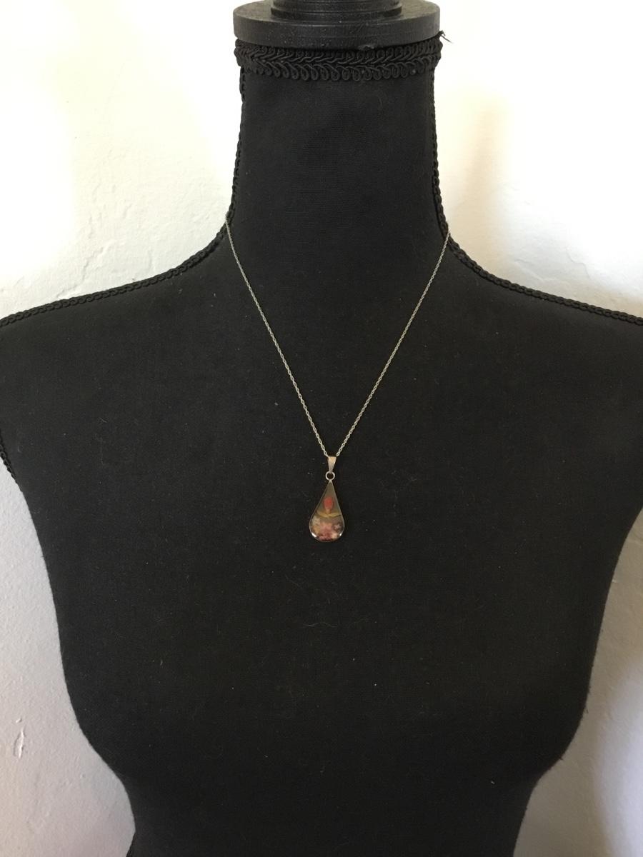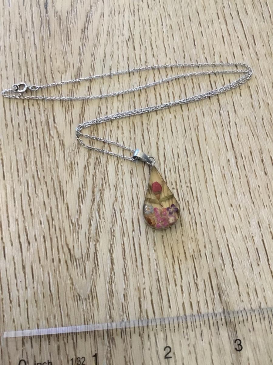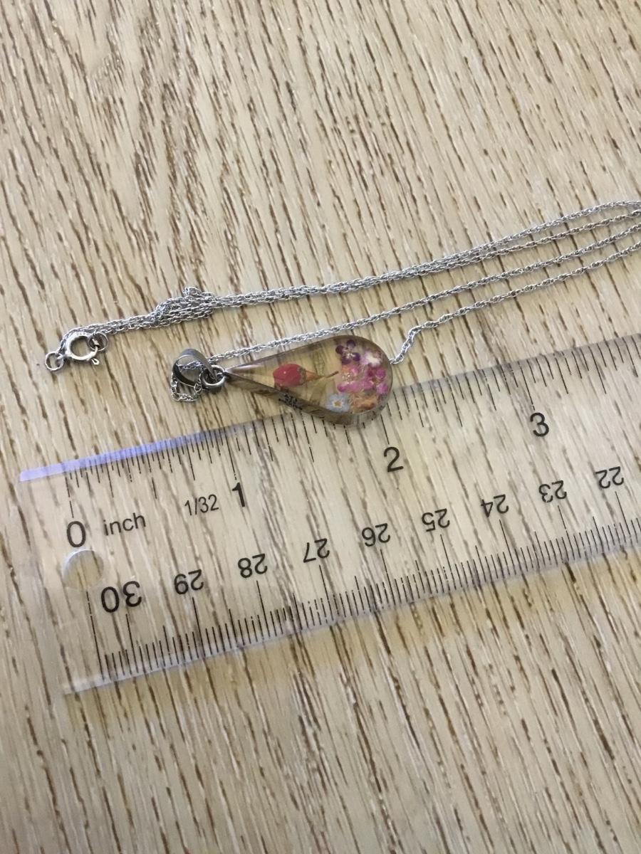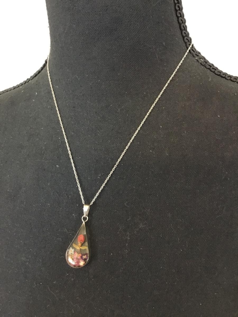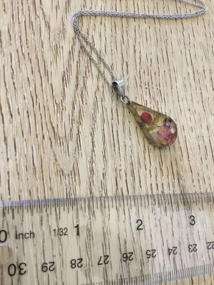 Super cute, vintage acrylic, dried flower, 925 sterling silver pendant chain necklace