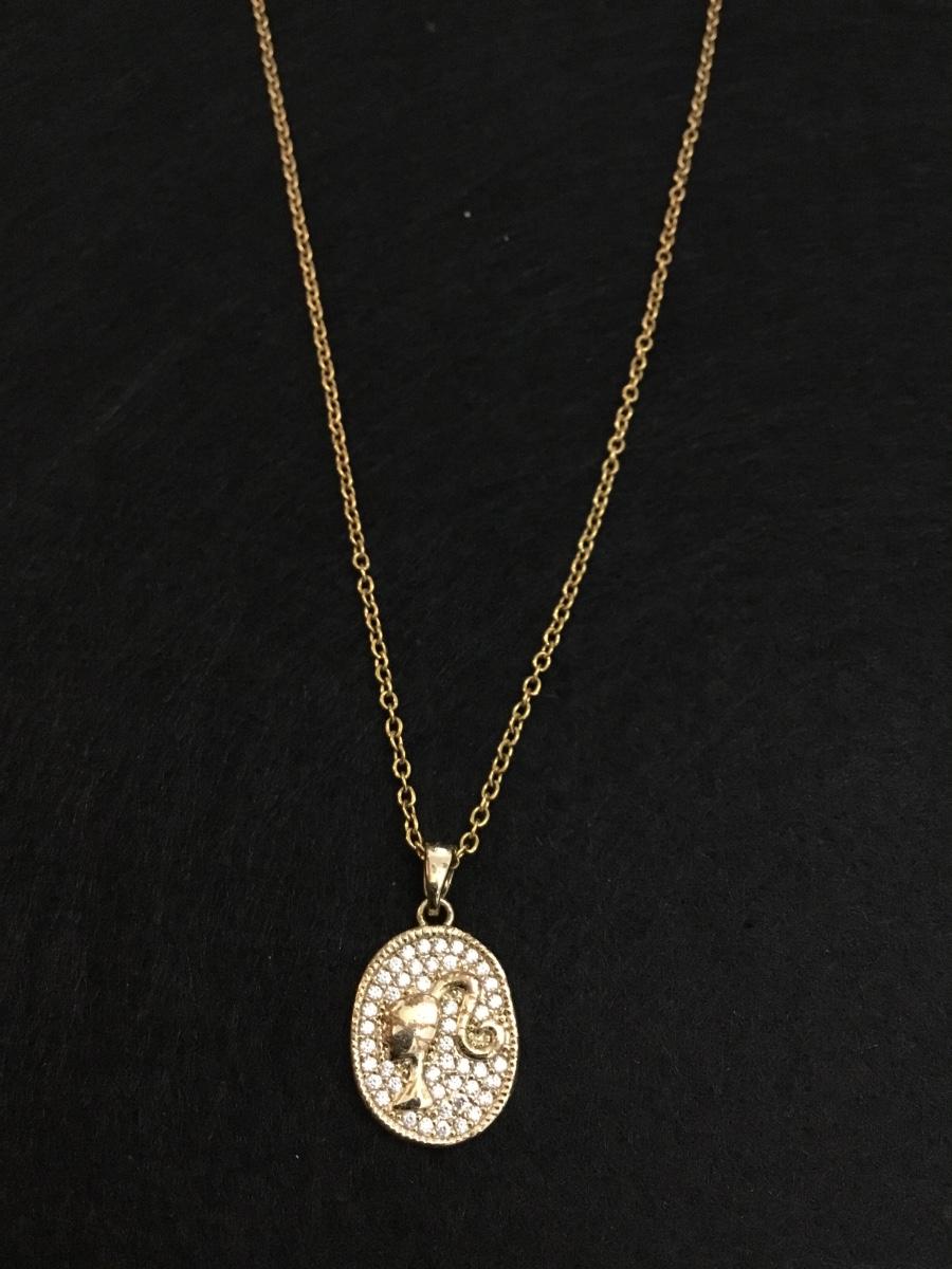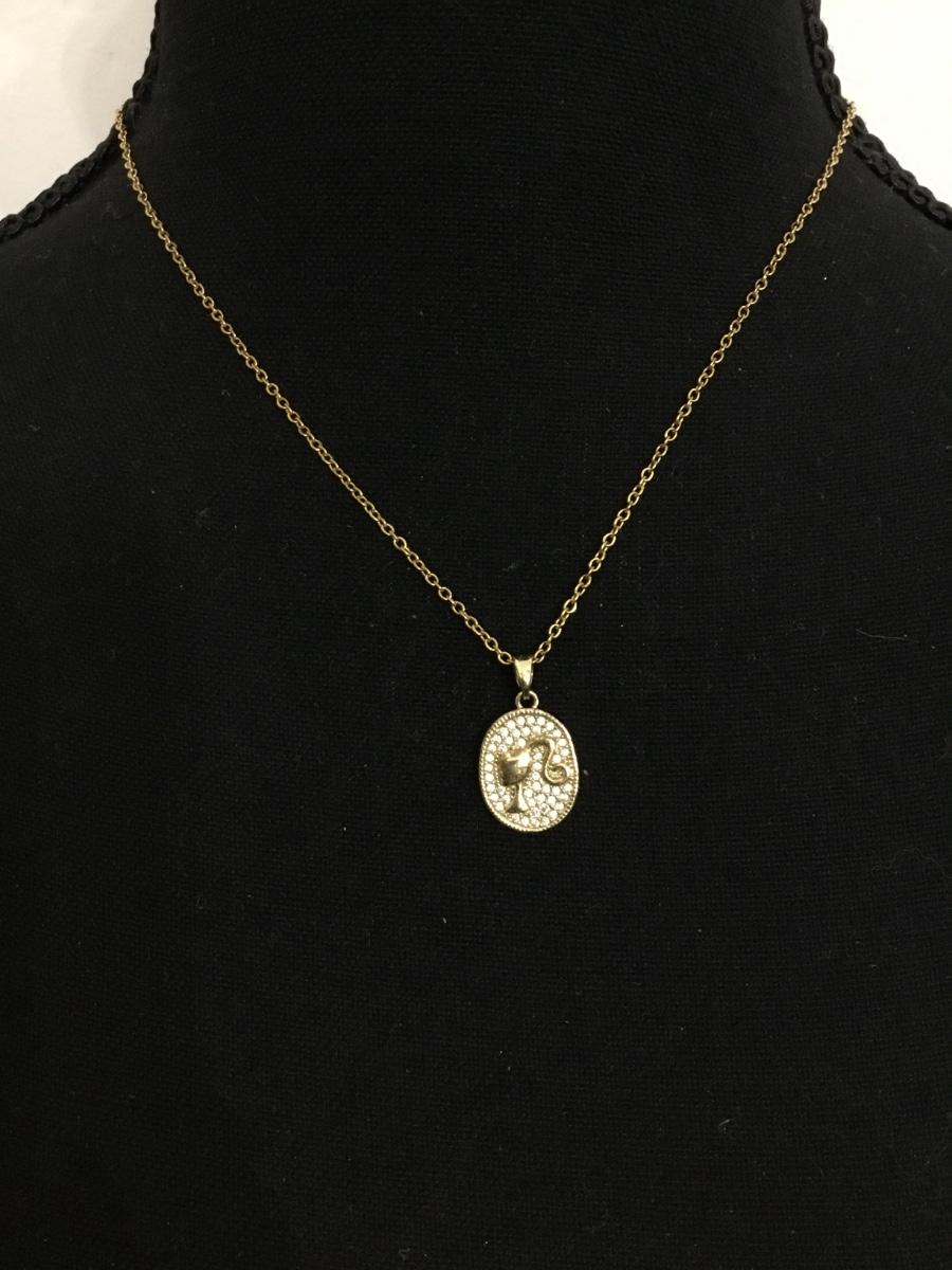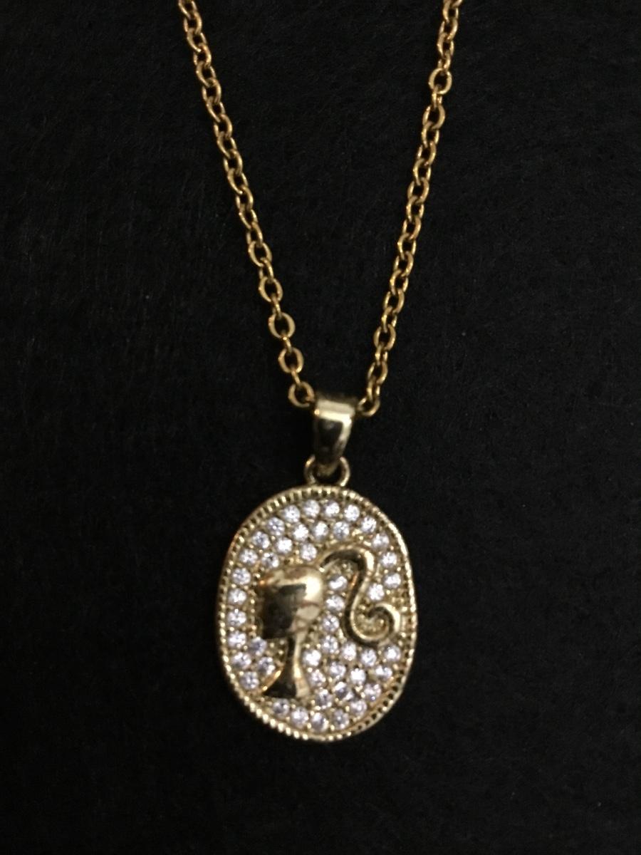 Super cute vintage Barbie doll, silhouette gold, toned rhinestone pendant with gold tone chain necklace