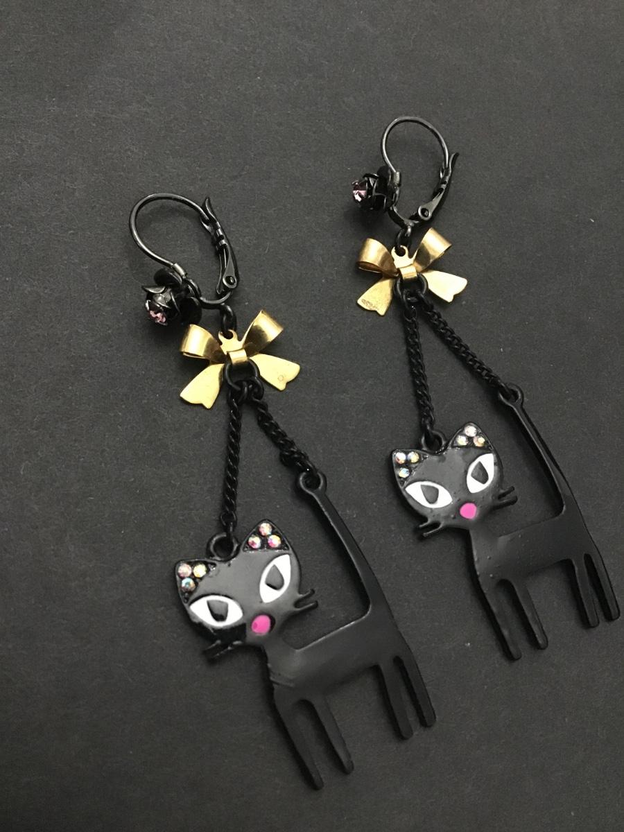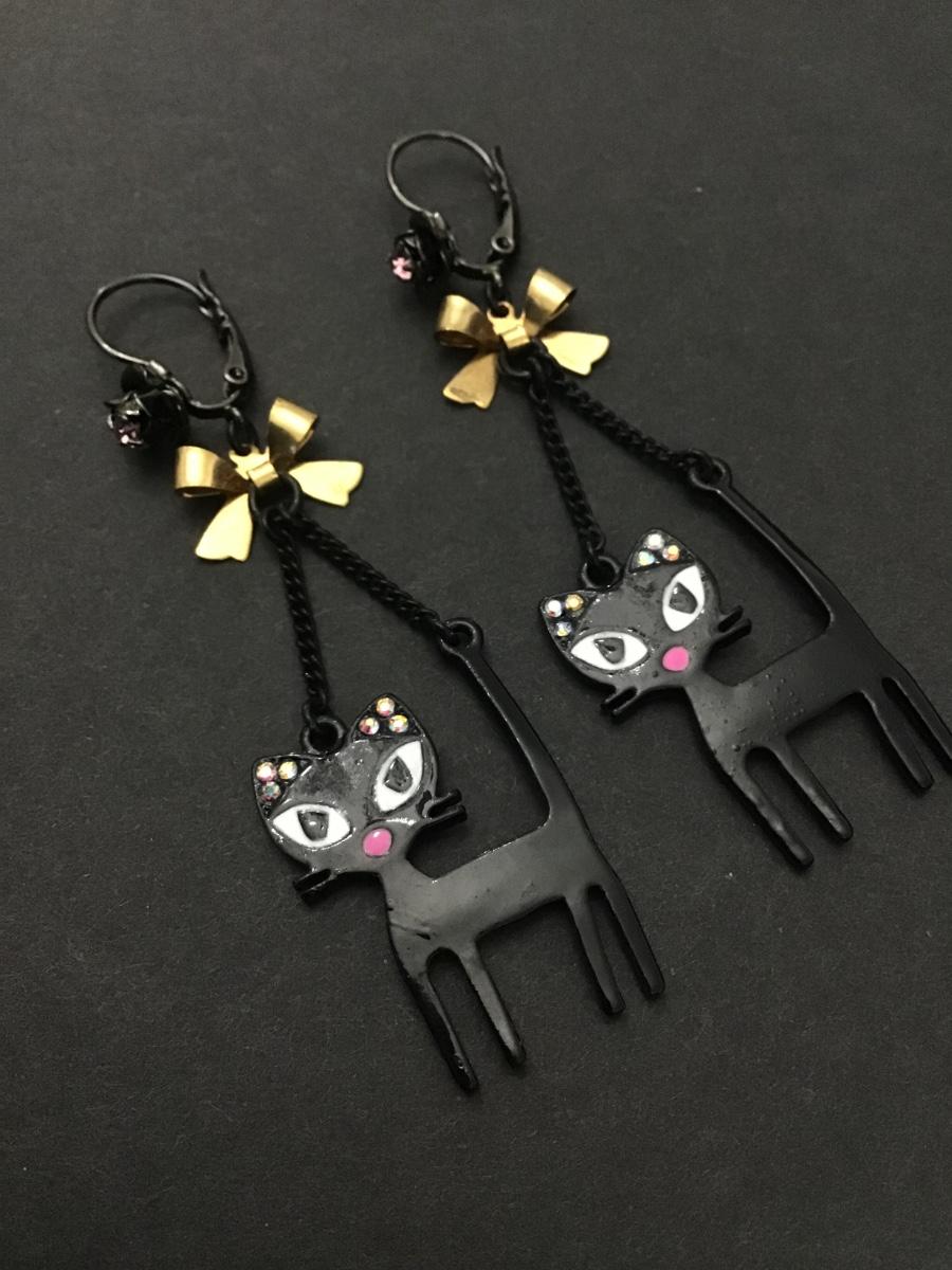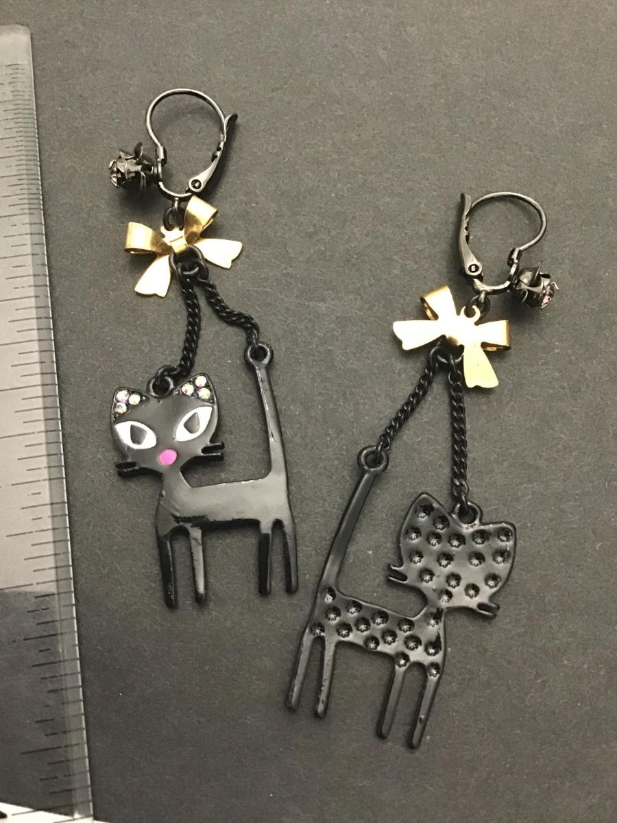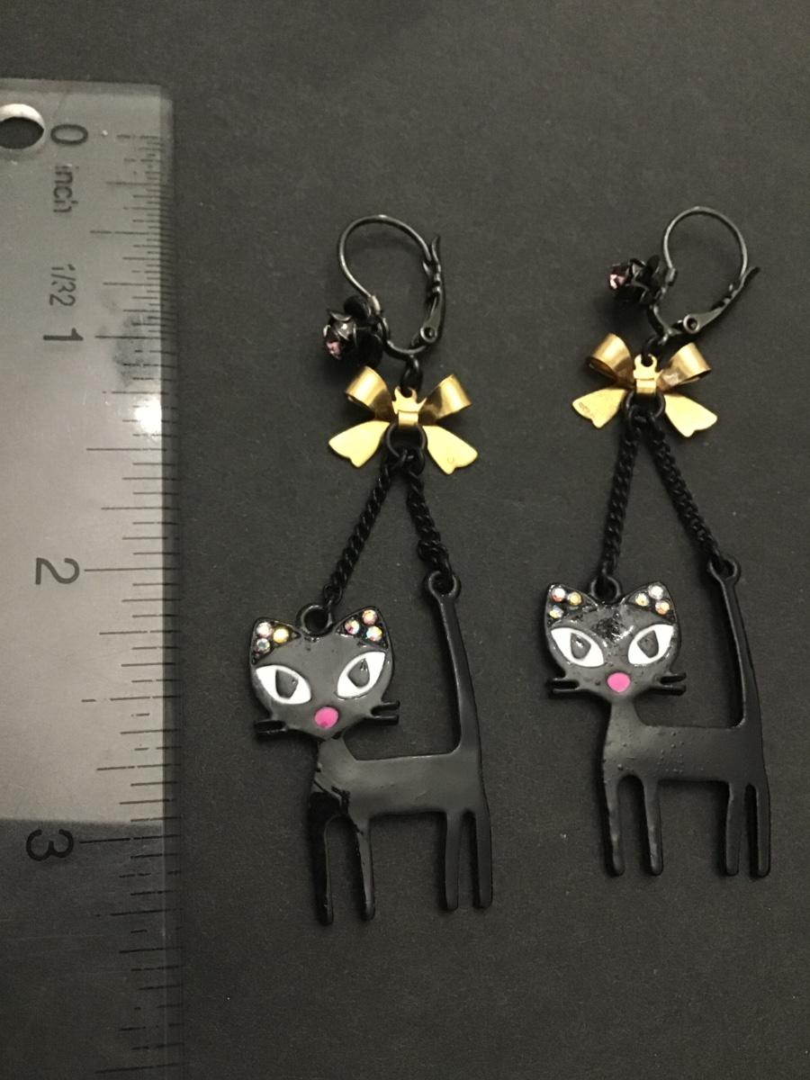 Super cute vintage, Betsey Johnson, Black kitten drop dangle earrings