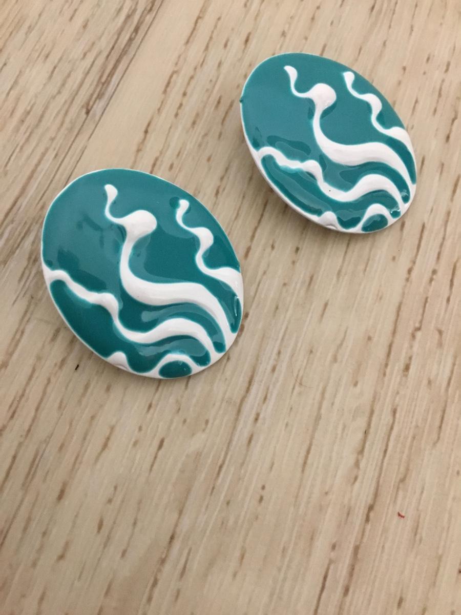 Super cute vintage, enamel, turquoise, white stud earrings