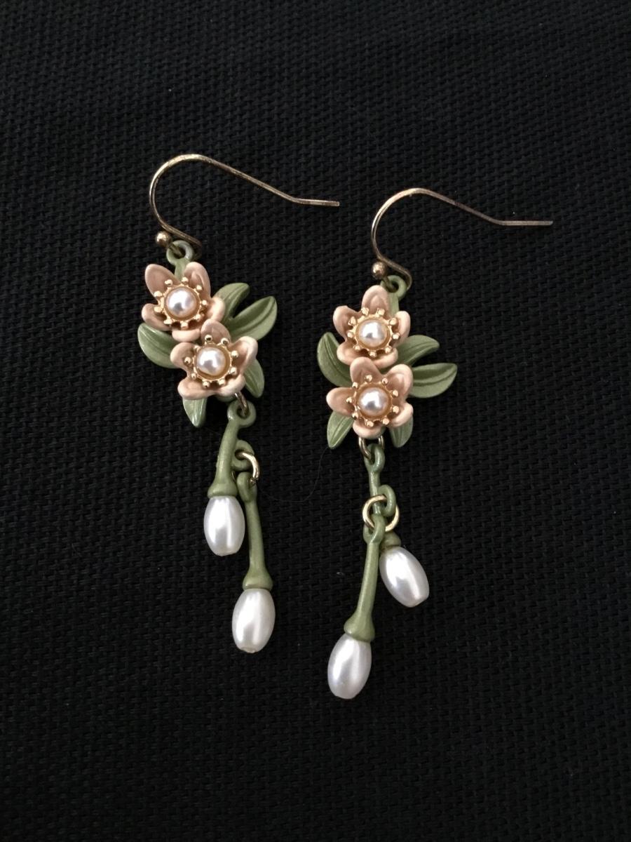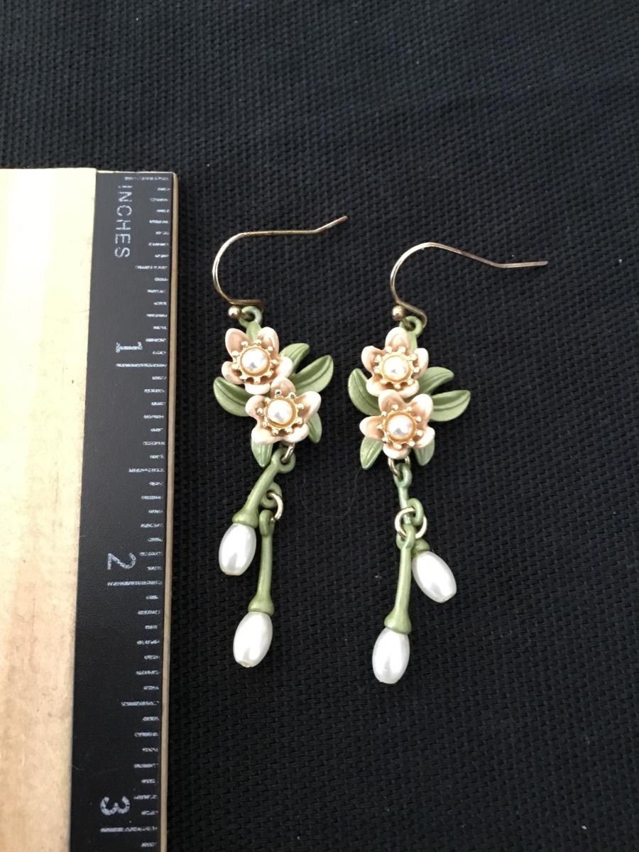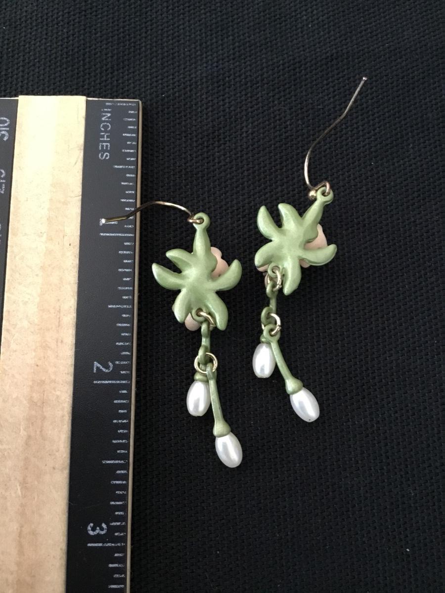 Super cute vintage enameled, baby, pink, and green dangle earrings