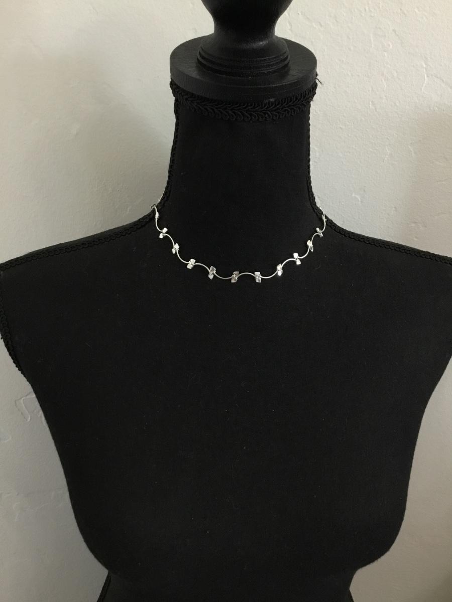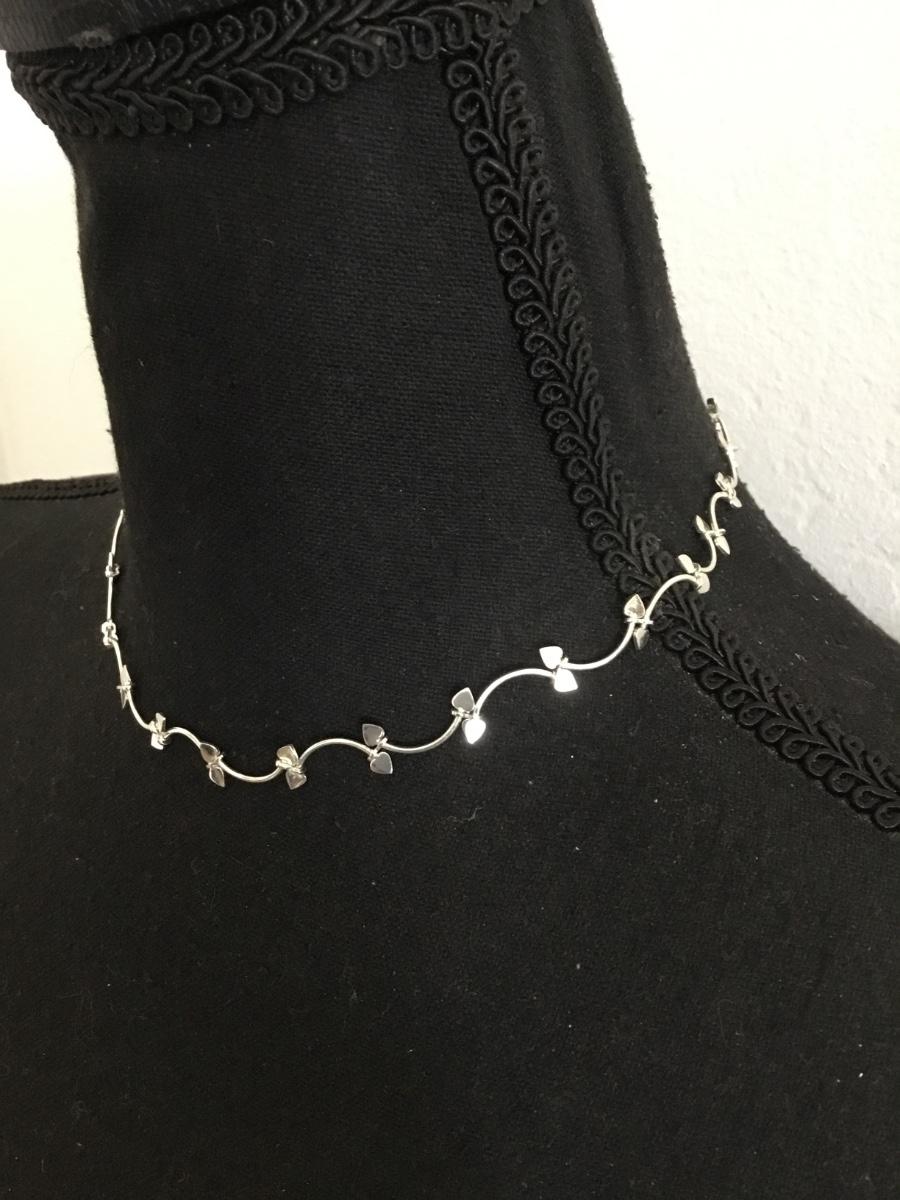 Super cute, vintage, silver toned heart, dainty collar necklace