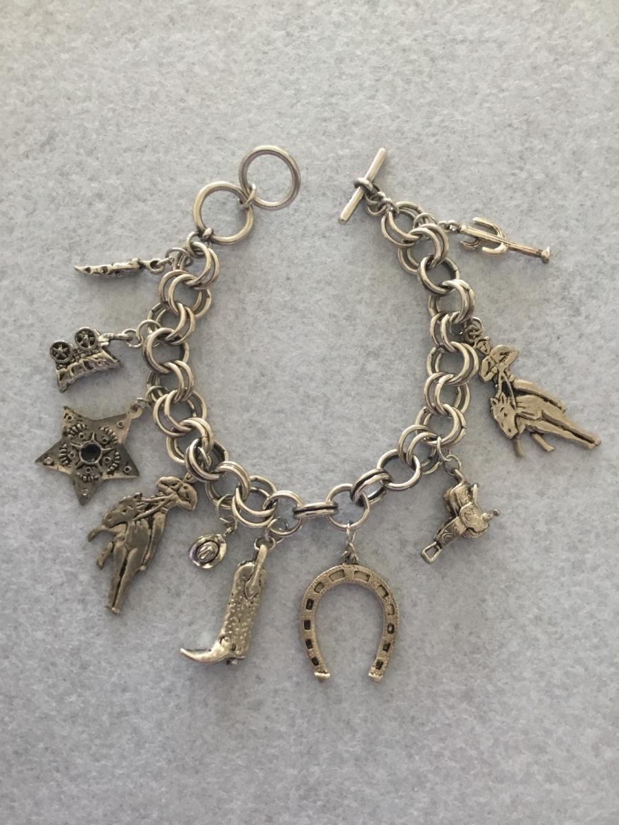 Super cute vintage, Silver-tone, cowboy western charm bracelet
