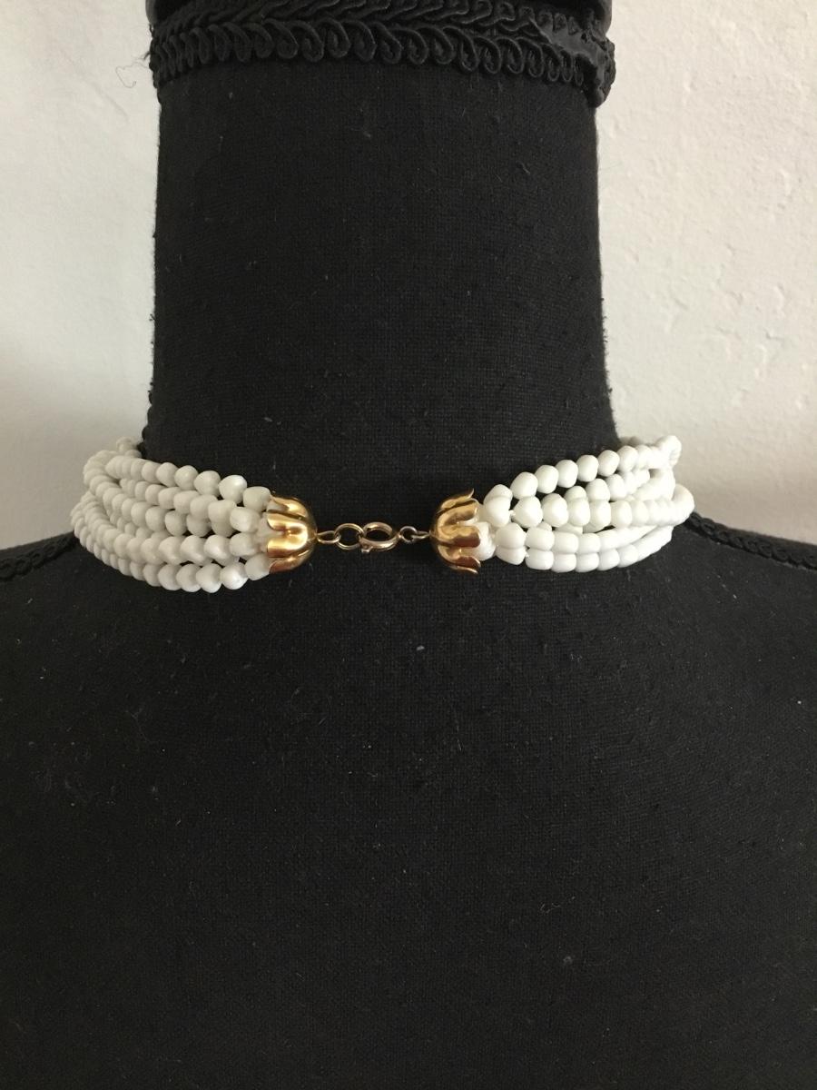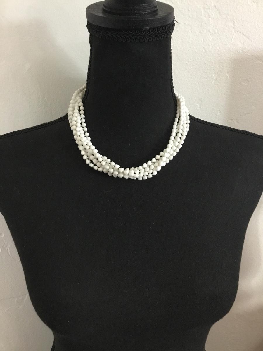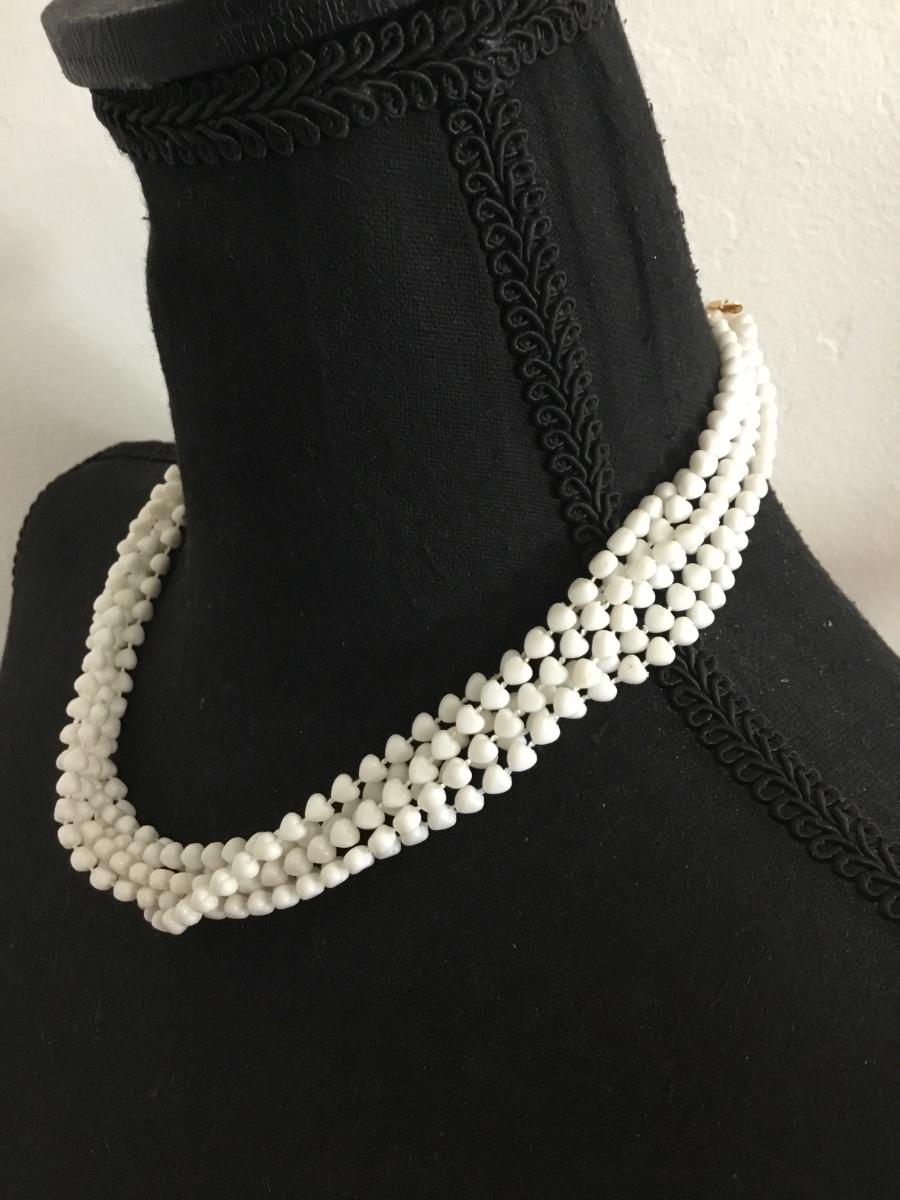 Super cute, vintage, white plastic, heart bead, multi strand necklace