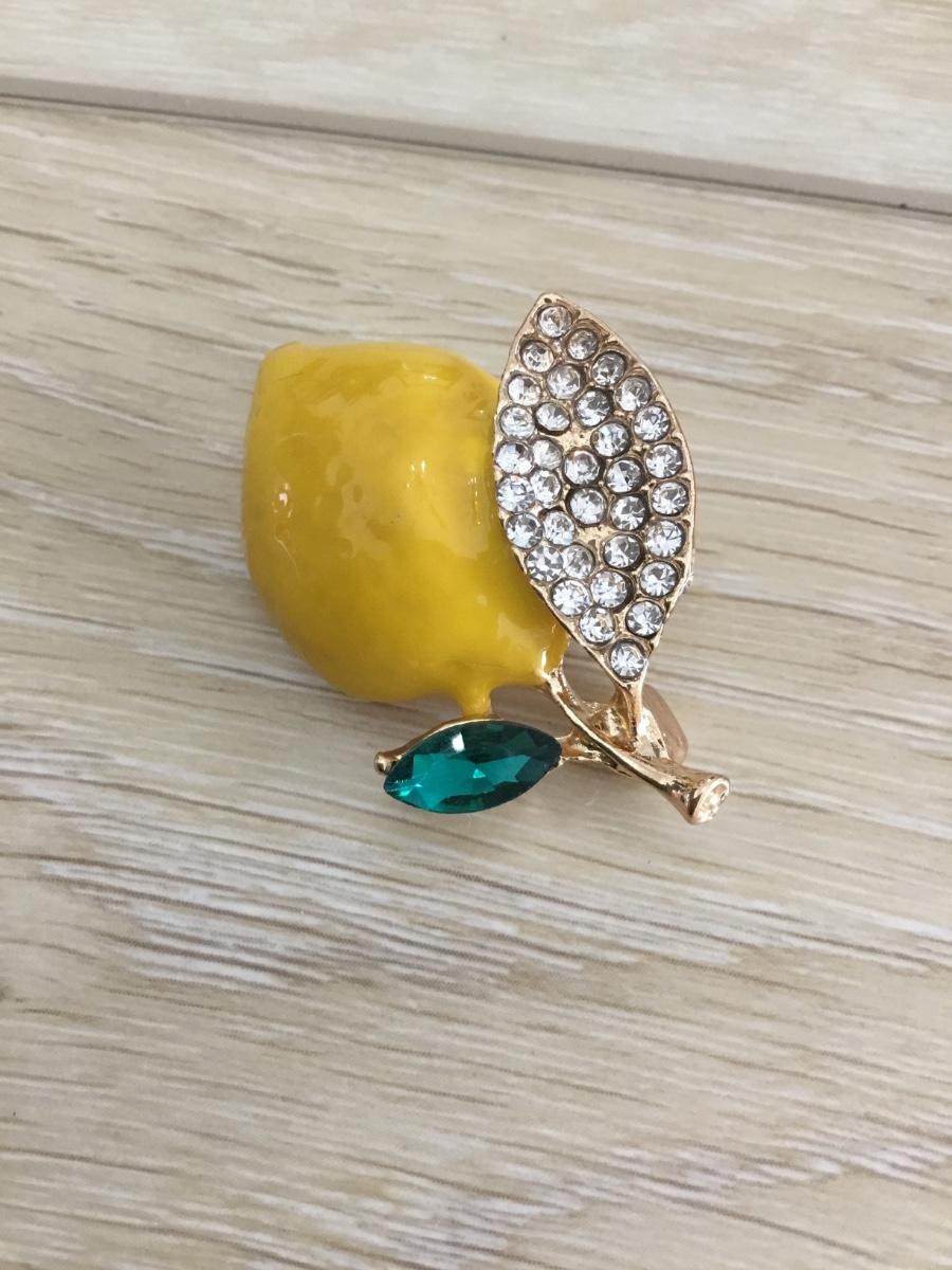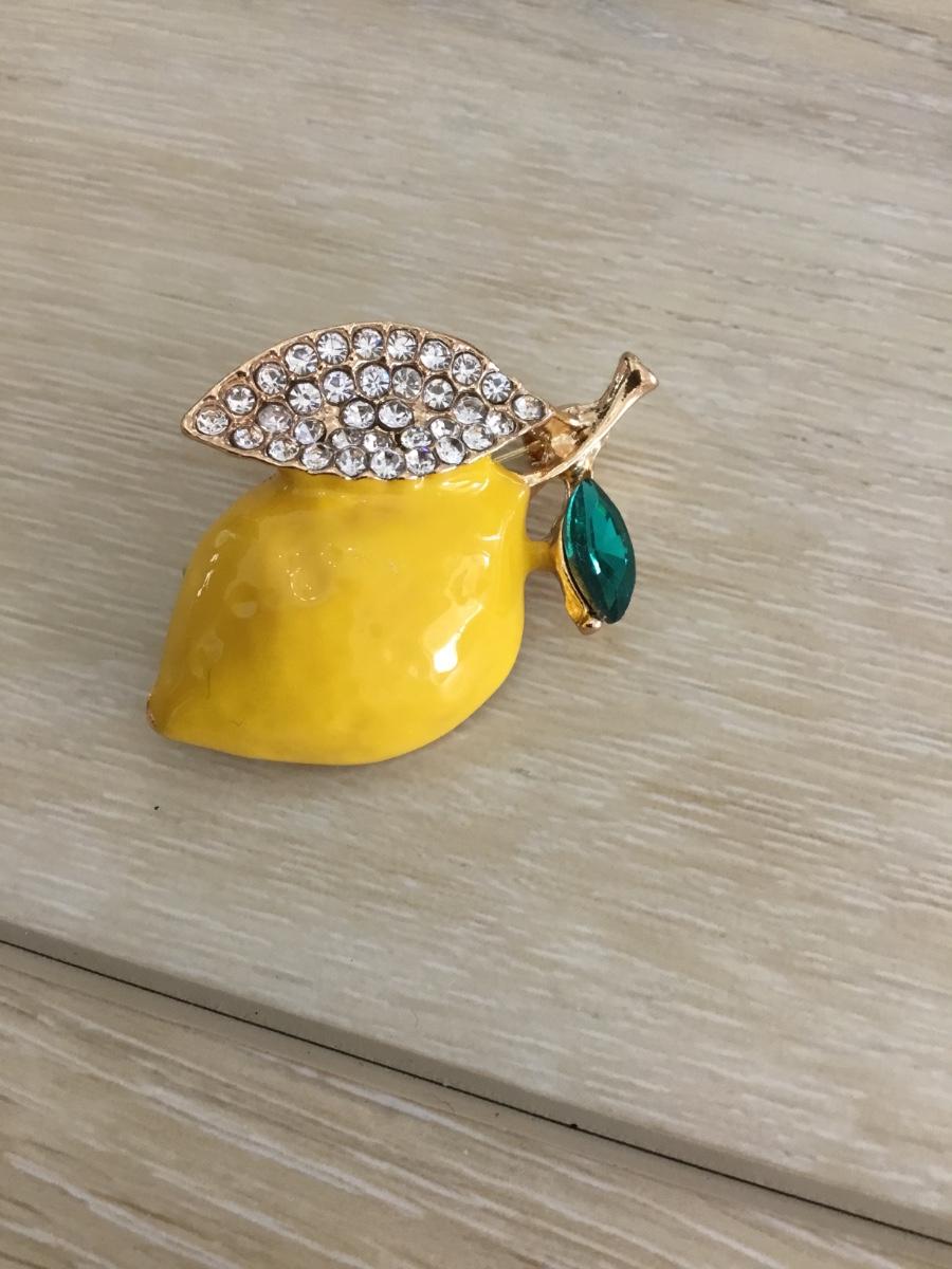 Super cute, yellow enamel lemon, with rhinestones fashion brooch