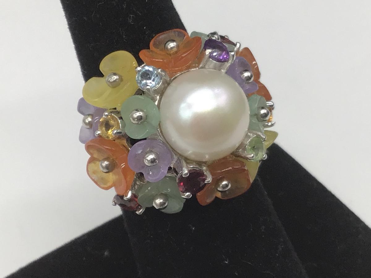 Super Duper. Cute Silver 925 Multi stone Glass Flowers and Pearl