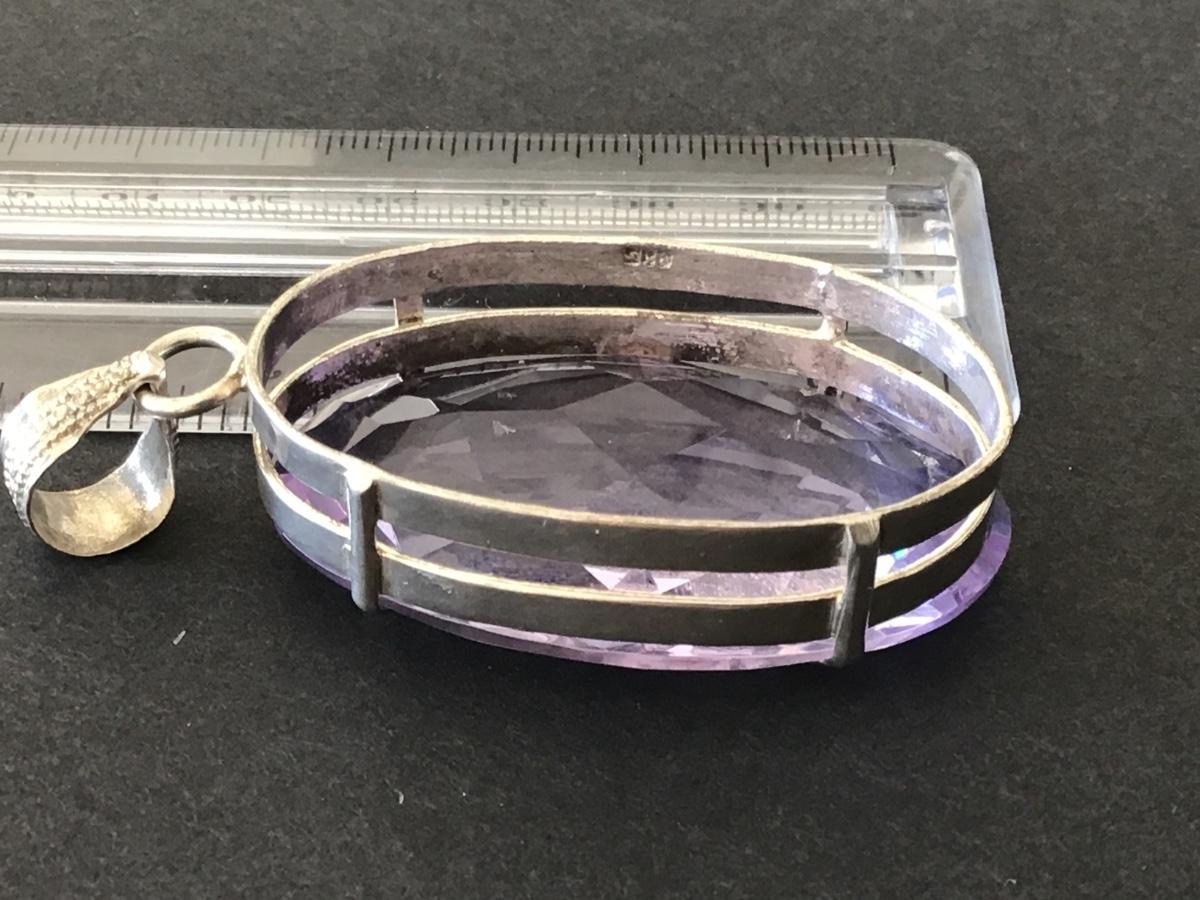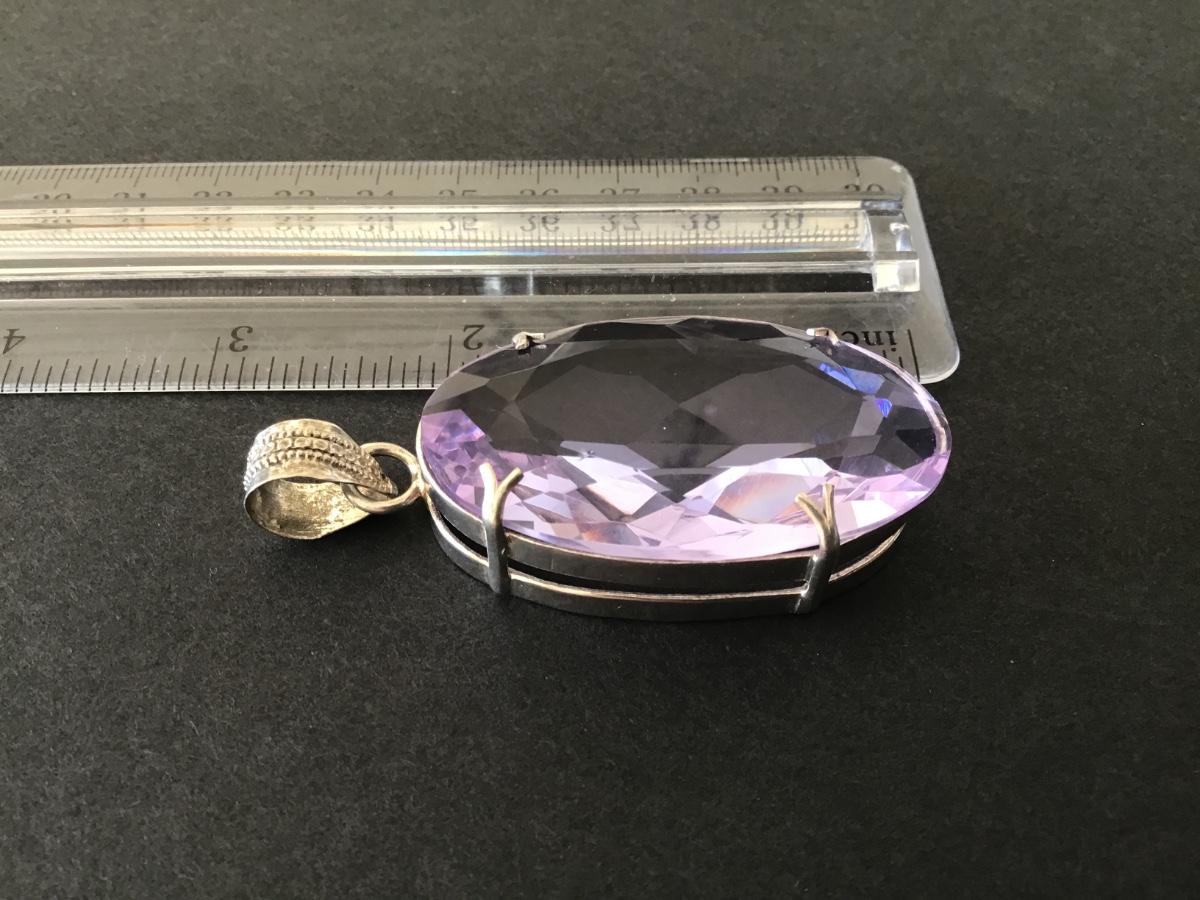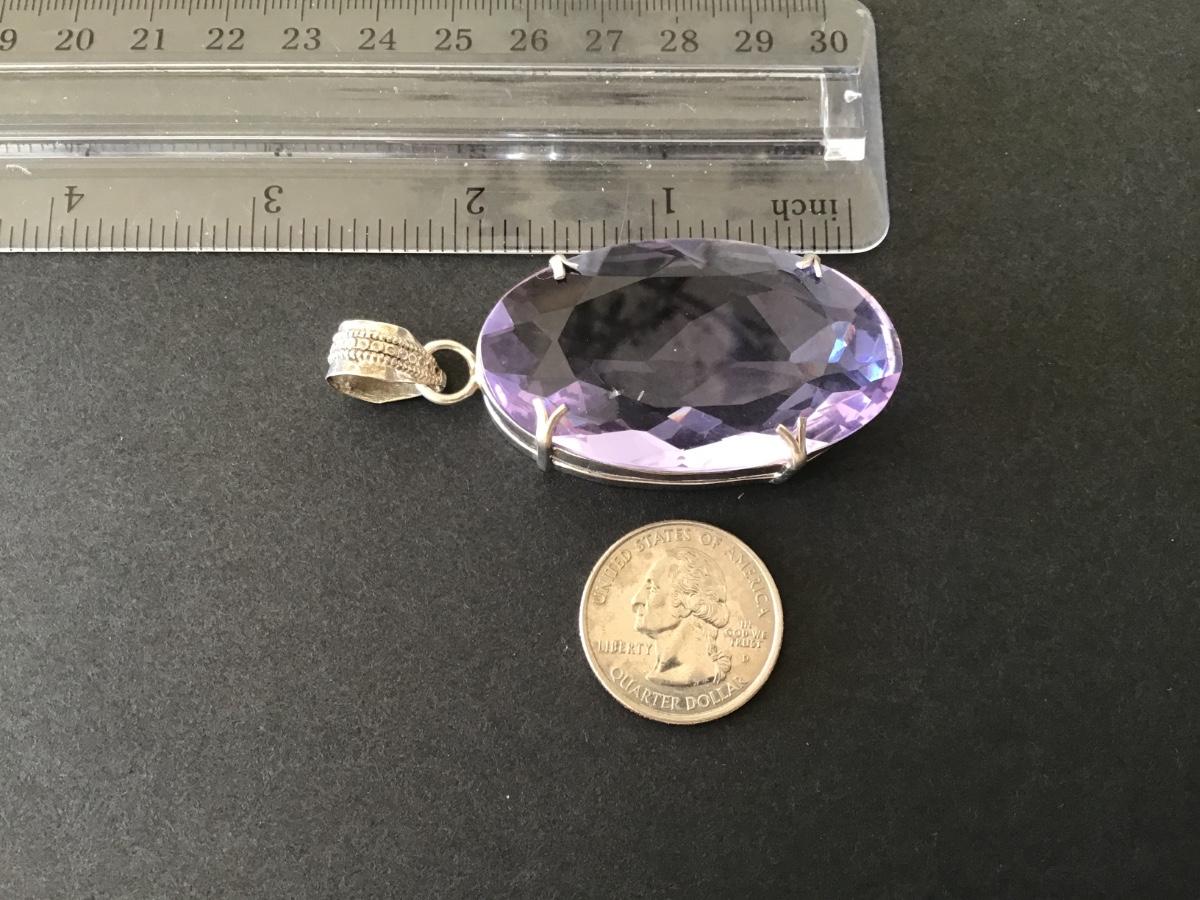 Super Large 925 Sterling Purple Stone Pendant. Tested Dilver