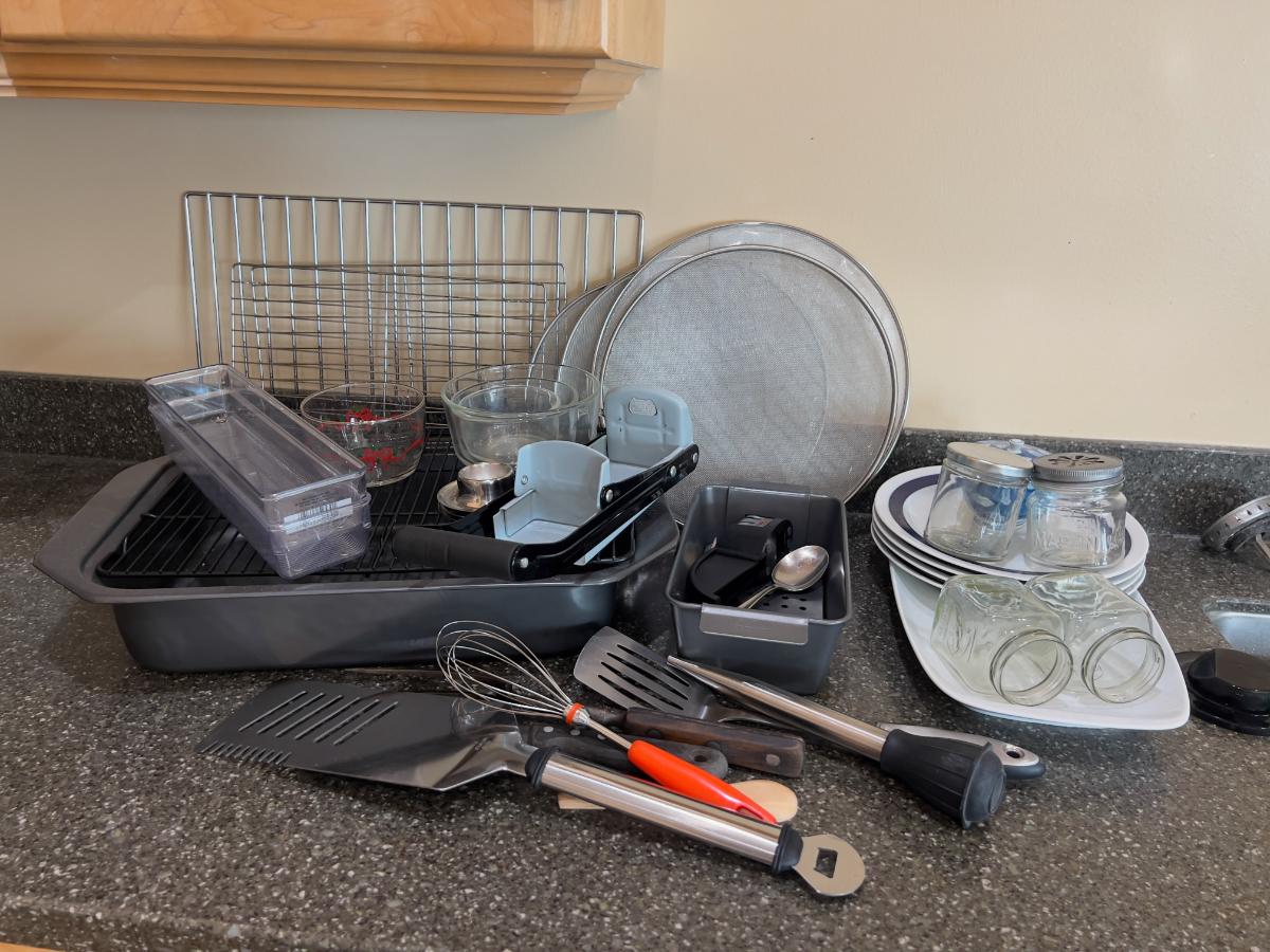 Super Lot of Kitchen Items: Glassware, Cookware, Utensils, Dishes ETC.