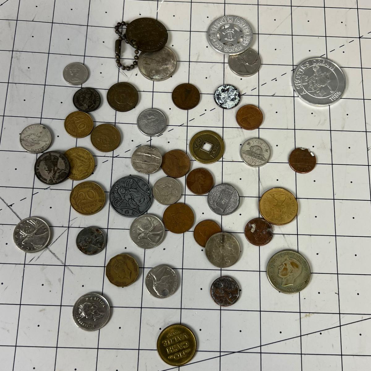 Super Lot of Very Lucky Mixed Coin: Tokens, Coins, Foreign Etc.,