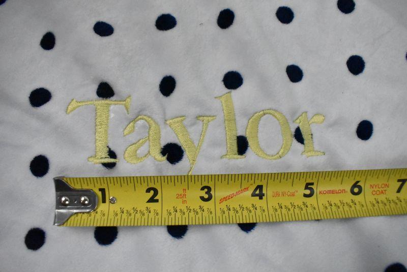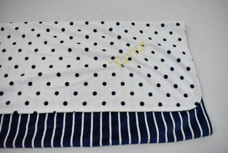 Super Soft Blanket from Pottery Barn Kids, Embroidered "Taylor" Navy/White Stripes/Dots - New